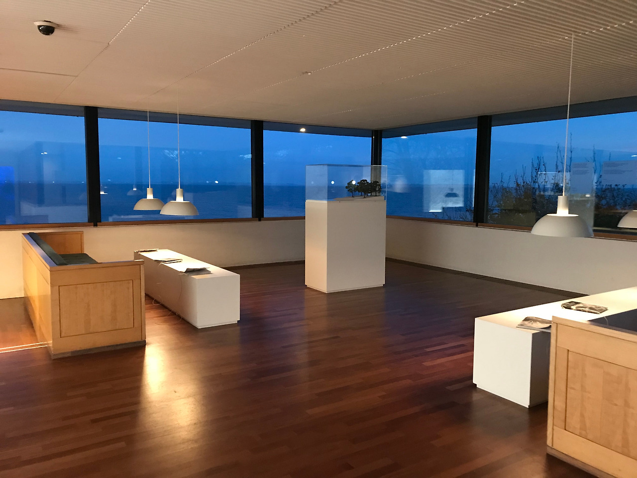 그렇게 둑에서 호수로 내려가는 가파른 빗면에, 호수의 정면으로 전진하는 3층 높이의 직육면체 공간이 설계되었다. 제한된 각도에 면적이 그리 넓지 않았기 때문에, 갤러리에 필요한 더 많은 공간들은 각각 분리되어 바다를 향해 배치되었다. 호수 반대편 앞뜰에 자리잡은 고목들과, 고사리가 자라는 작은 골짜기도 그대로 유지되었다. 건축가들이 남긴 수 십장의 초기 스케치들, 지웠다 그리기를 반복해 거뭇해진 얼룩에서 땅의 생김새와 기존 건물들 사이의 조화를 찾으려던 그들의 부단한 노력을 느낄 수 있다