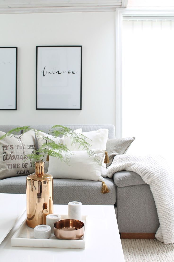 반대로 그레이-블랙 계열의 공간은 시크하지만 자칫 경직되고 우울하게 느껴질 수 있는데, 쿠퍼 소품을 배치함으로써 활력을 불어넣고 현대적이면서 동시에 고전적인 감각을 느낄 수 있다.