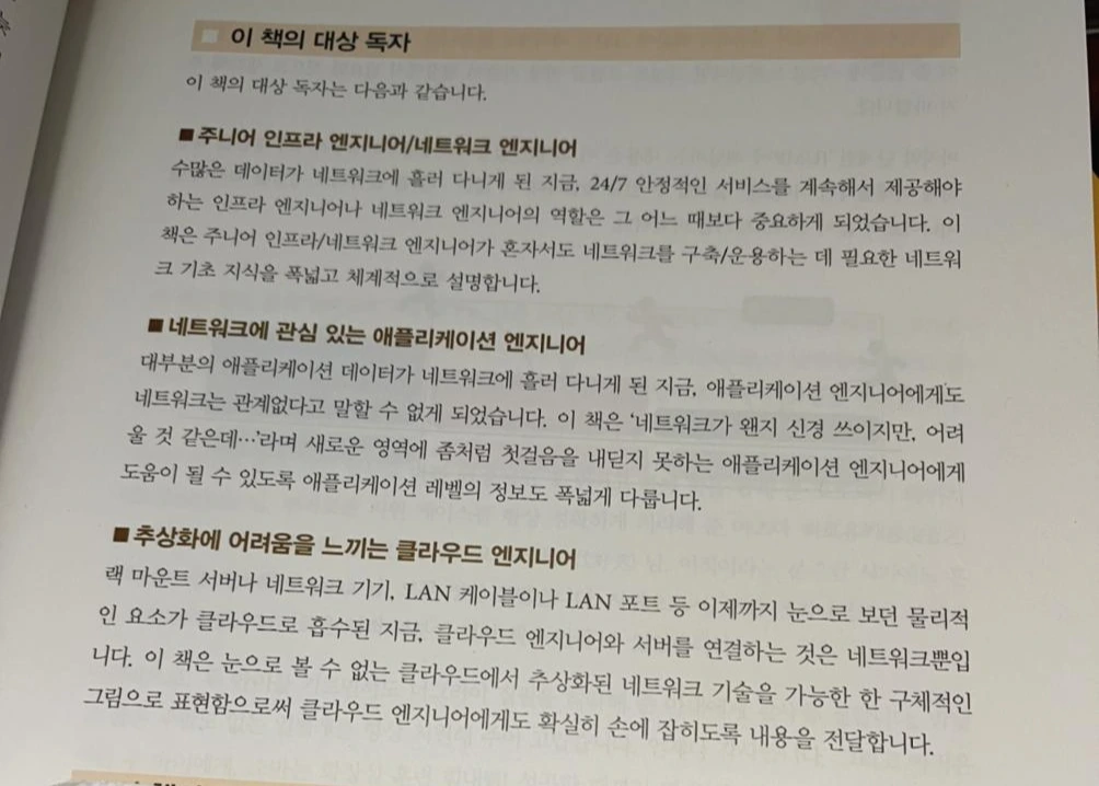 저자가 타깃으로 하는 독자는 주니어 인프라 엔지니어/네트워크 엔지니어, 애플리케이션 엔지니어, 클라우드 엔지니어라고 하는데 개인적으로는 다음의 사람이 봤으면 한다.