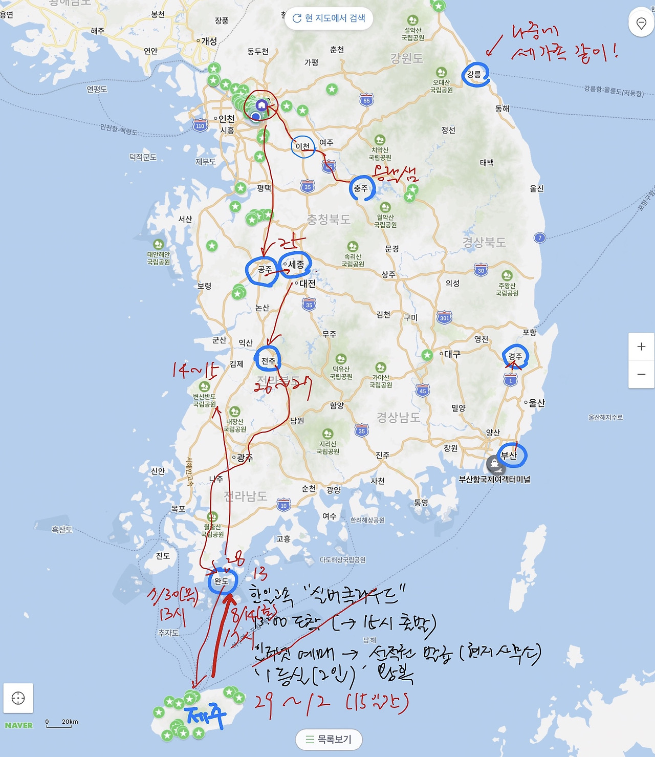 원래 막연한 생각으로는 여수나 목포로 내려가서 거기서 배 타고 제주도로 들어갔다가 나올 때에는 부산으로 갈 생각이었는데, 찾아보니 완도항 외엔 출항하는 제주행 배들이 새벽이나 늦은 밤에 이동해야 하는 번거로움이 있었다. 아직 열한 살 딸을 나 혼자 데리고 움직이는 상황을 상상하니 낮시간에 움직일 수 있는 배편을 찾아보게 되었고 최종적으로 완도 여객터미널에서 배 타고 제주도로 가는 경로로 결정을 했다.