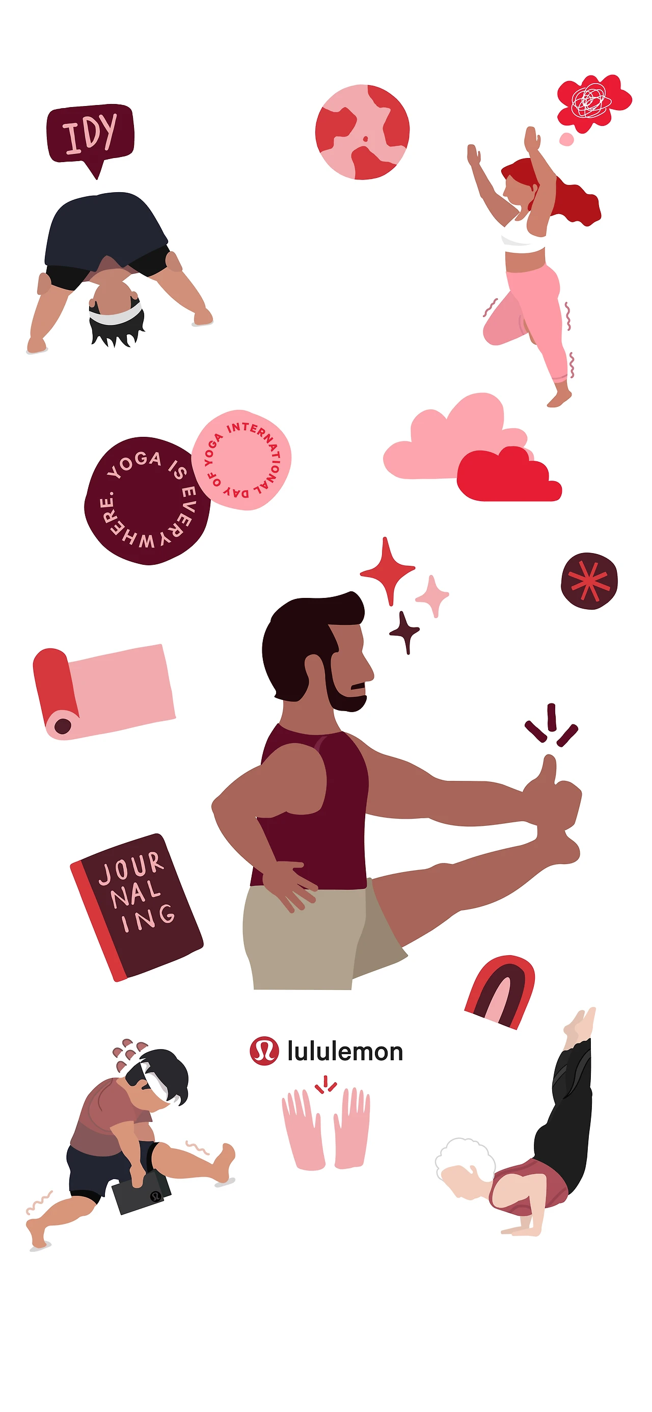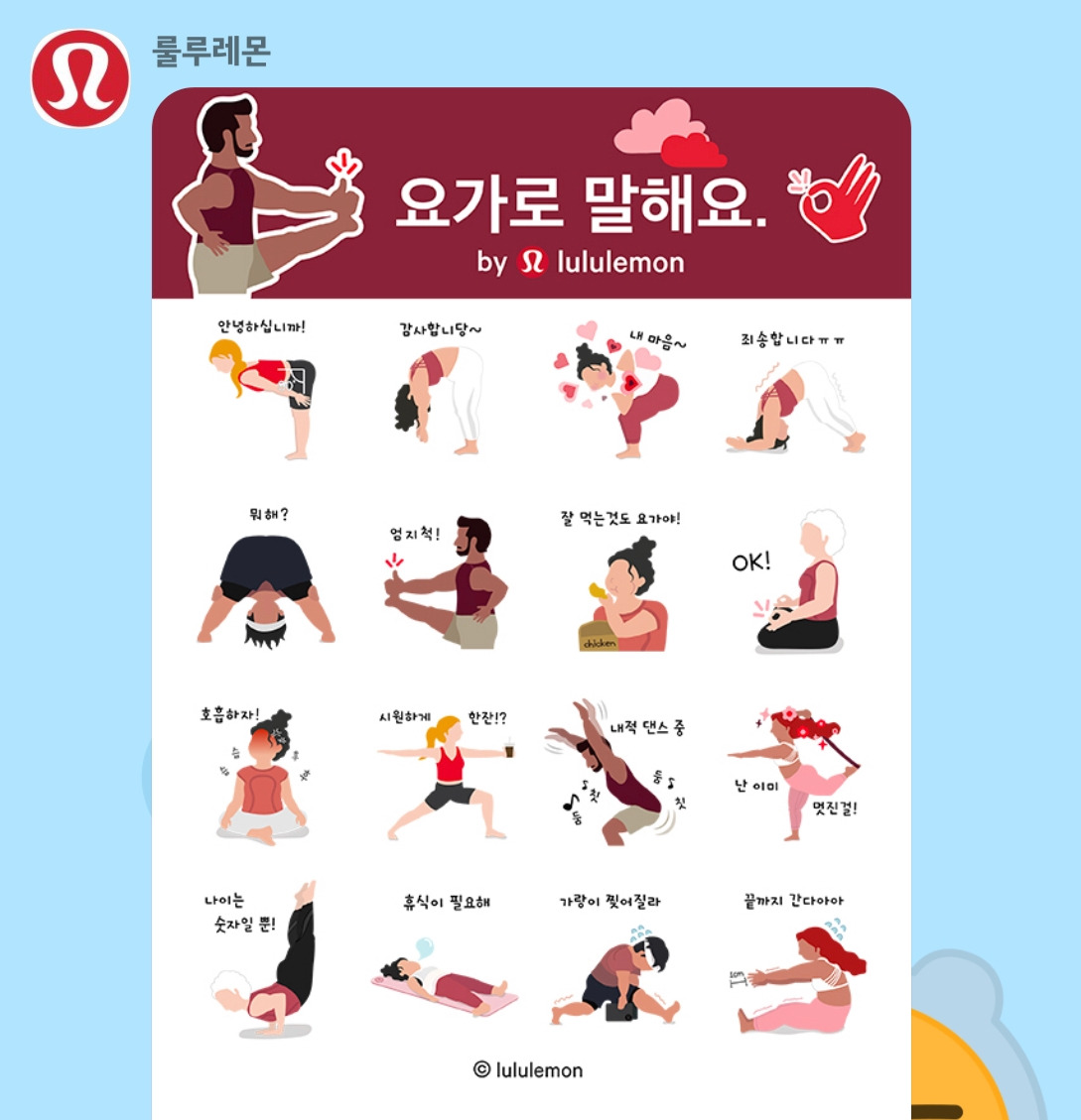 숨쉬는 고래 스튜디오에서 함께 수련하고 있는 웰니스 일러스트레이터 다희님(@BARABOM_LIDA)의 작품이 담겨있는 미니 요가 키트도 선물 받아서 그 기대감이 더 커졌다. 다희님의 요가 일러스트레이션 스티커, 카톡 이모티콘을 보면서 룰루레몬 브랜드 마케터분들의 브랜딩 방향성도 읽어볼 수 있었다. 이제 요가를 ‘그들만의 수련, 그들만의 운동’이 아니라 우리 모두가 쉽게 접근할 수 있는 ‘생활 속 활동’으로 가져오려는 노력을 엿본다.