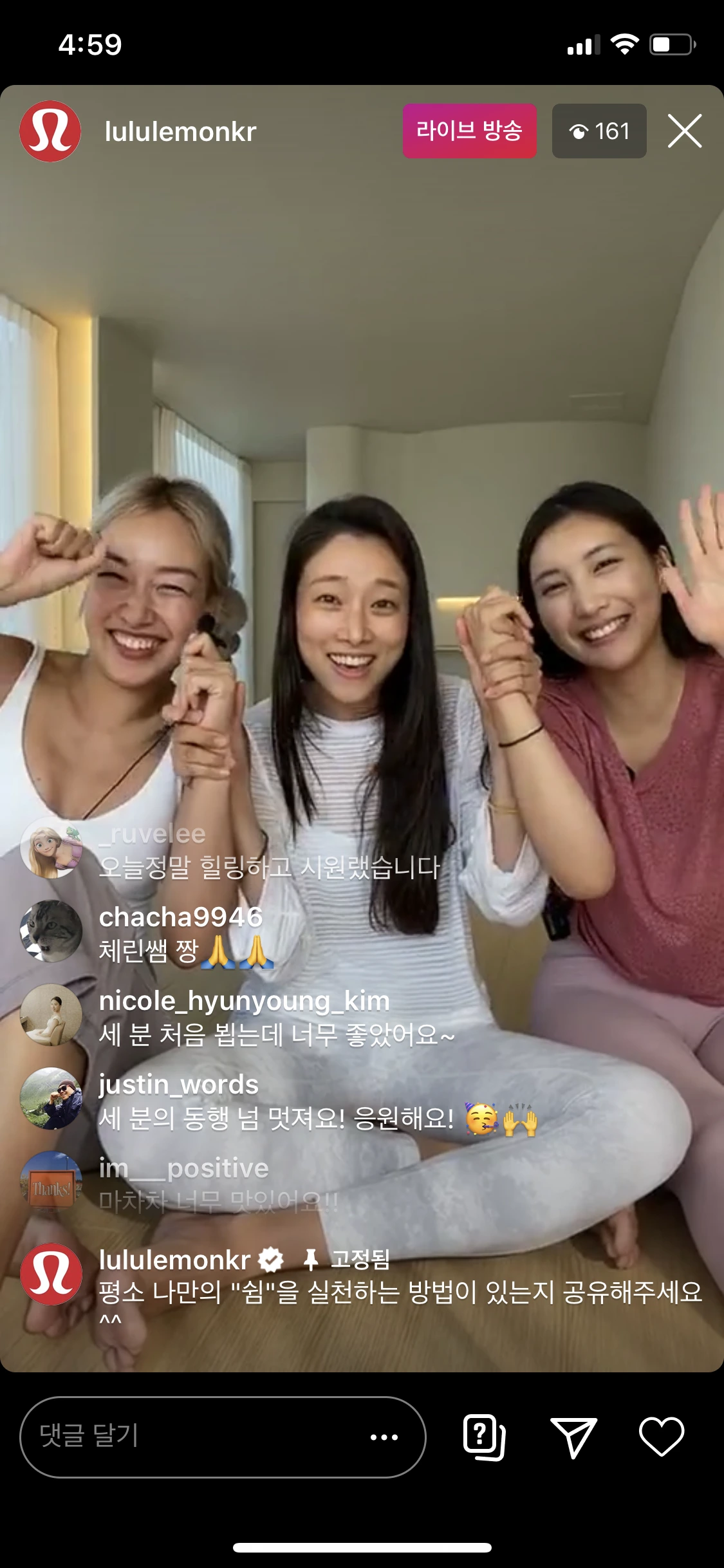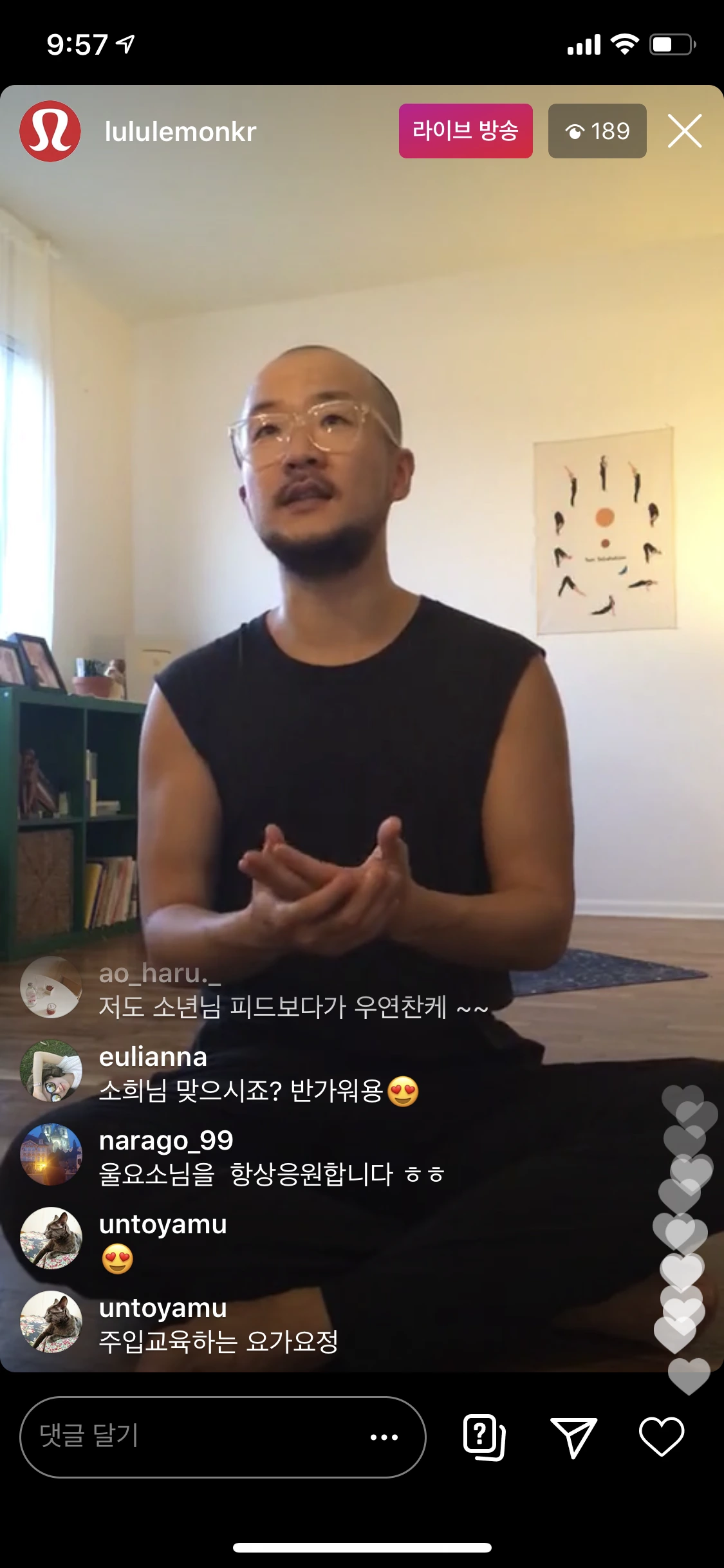 일요일 아침 알람을 맞춰놓고 멀리 미국 미시간에서 전파를 타고 우리집 거실까지 날아온 요가소년의 인스타 라방을 보며 몸을 풀어낸다. 기본적인 자세부터 꼼꼼히 설명하는 그의 이야기에서 다시 한번 요가 인구 저변 확대에 노력하는 룰루레몬의 의지를 엿본다. 수리야나마스카 A 플로우를 천천히 따라하다보니 몸과 마음도 활짝 열린다. ‘어제의 나’와 비교하지 말라는 요가소년의 당부가 머릿속에 메아리친다. 다른 사람들과 심지어 어제와 미래의 나와 늘 경쟁하듯 달려온 나를 마음 깊이 안아줬다.