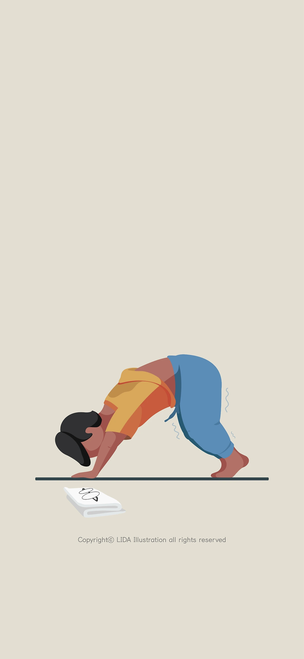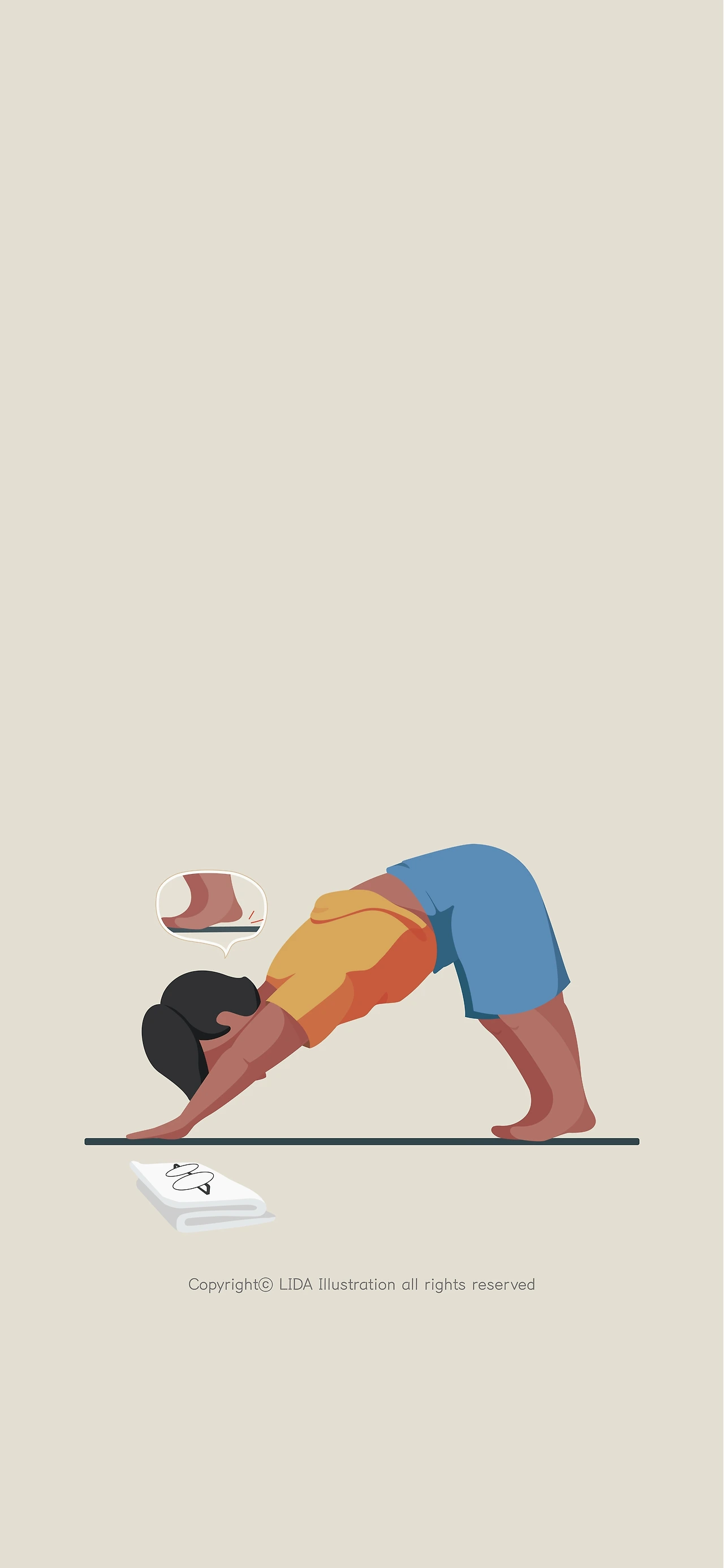 정확한 자세를 취하고 있는지 알아채기도 쉽지 않을뿐더러, 팔과 다리와 허리를 뻗어낼 때의 느낌이 매번 다르다. 어느 날은 왼쪽 허벅지가 타이트하게 느껴지고 어느 날은 오른쪽 어깨가, 또 어떤 날은 양 발목이 부드럽지 않게 느껴진다. 그래서 이 자세를 취할 때마다 ‘나는 요린이(요가 어린이)구나.’하는 생각이 든다. 그러면서 한편으론 좌절감이 들기도 한다. 꽤 오래 수련을 한 것 같은데도 띄엄띄엄하다 보니 이 기본자세도 제대로 못하는구나 하는 자조적인 내면의 목소리 때문이다.