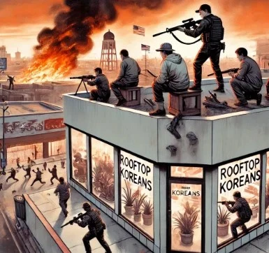 35년 전 LA 흑인폭동 때도 나섰다. 어중이떠중이 오합지졸 폭도와는 차원이 달랐다. 미국에서 삶의 터전을 일궈나가던 한인 남성들은 대부분 정규 군복무를 마친 베테랑이다. 옥상 진지 구축, 엄폐와 은폐, 기관총설치, 통신, 민간차량의 군용 개조... 대한민국 예비군훈련소의 그 맹구가 아니다. 내 가족, 내 재산을 지키는 의병이다.