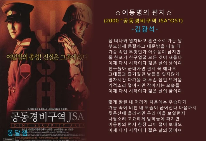 "이등병의 편지"는 남북 통틀어 군입대를 앞둔 젊은이들의 애창곡 1위다. 고 김광석도 자기 노래가 북한 젊은이들의 최애곡이 될 줄 몰랐을 것이다. 물론 대다수 북한 젊은이들은 이 노래가 중국 연변 조선족 노래로 안다고 한다. "뭐 좀 아는" 일부만 아랫동네 노래임을 안다고 한다. 군복무 11년을 채워야 하는 북한 "흙수저"들은 "집 떠나와 열차 타고 훈련소로 가는 날 부모님께 큰절하고 대문 밖을 나설 때"라는 가사를 저마다의 가슴속에 새기며 훈련소행 열차 속에서 열창을 한다.