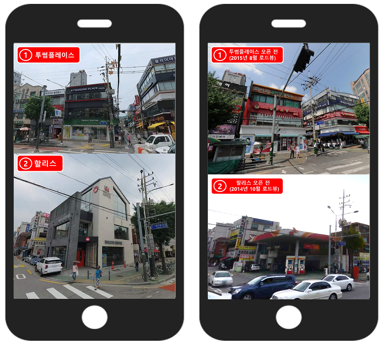 투썸플레이스는 할리스보다 매장 수는 2.6배가 많고, 매출액은 1.9배가 높다.연신내 할리스는 투썸플레이스보다 면적이 약 1.5배 크다.