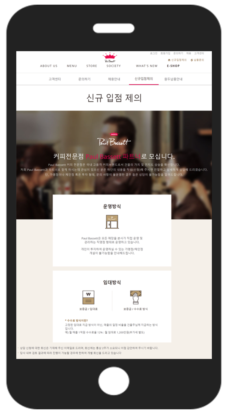 폴바셋의 임대방식 역시 스타벅스와 유사하다. (ⓒ폴바셋홈페이지)반면 스타벅스에서 유동인구나 배후수요 등을 조사한 결과 예상매출이 높게 나올 것으로 예상된다면 변동 임대료(수수료) 방식을 제안할 것이다. 이때 건물주는 스타벅스의 예상매출만 듣고 절대 현혹되서는 안 된다.