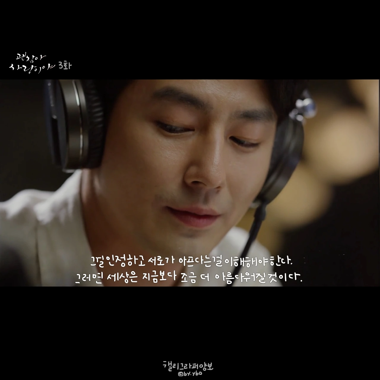 특히 작가의 작품 속에는 여느 드라마에서 쉽게 볼 수 없는 다양한 세대와 장애나 편견을 지닌 인물들이 자주 등장하는데 이번 <우리들의 블루스>에서는 농인 별이(이소별 분), 다운증후군 영희(정은혜 분)가 등장한다. 그리고 이들이 가진 이야기를 부수적으로 소비하는 것이 아닌, 중심에 두고 풀어간다. 우리 사회가 평소 시선을 두지 않는 환경이나 인물이 처한 상황을 어떠한 편견이나 오해 없이, 있는 그대로 보여주고 있기에 노희경 작가의 시선이 담긴 작품은 볼 때마다 감탄과 반성을 동시에 가져다준다. 그래서 생각났다. 세상이 고집하는 선입견과 편견을 부수며 너와 내가 결코 다르지 않는다고 말하는 드라마 <괜찮아, 사랑이야(SBS, 2014)>가.