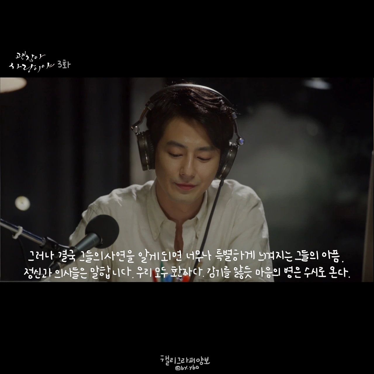감기를 앓듯 마음의 병은 수시로 찾아올 수 있다. 그러니 ‘나는 절대 그럴 일 없다’는 자만은 삼가고, 서로가 아프다는 걸 이해해야 한다고. 우리 모두는 환자라는 메시지를 작가는 장재열(조인성 분)이 출연하는 라디오 프로그램을 통해 또박또박 분명하게 전하면서, 사회가 갖고 있는 편견을 정면으로 마주보게 한다.