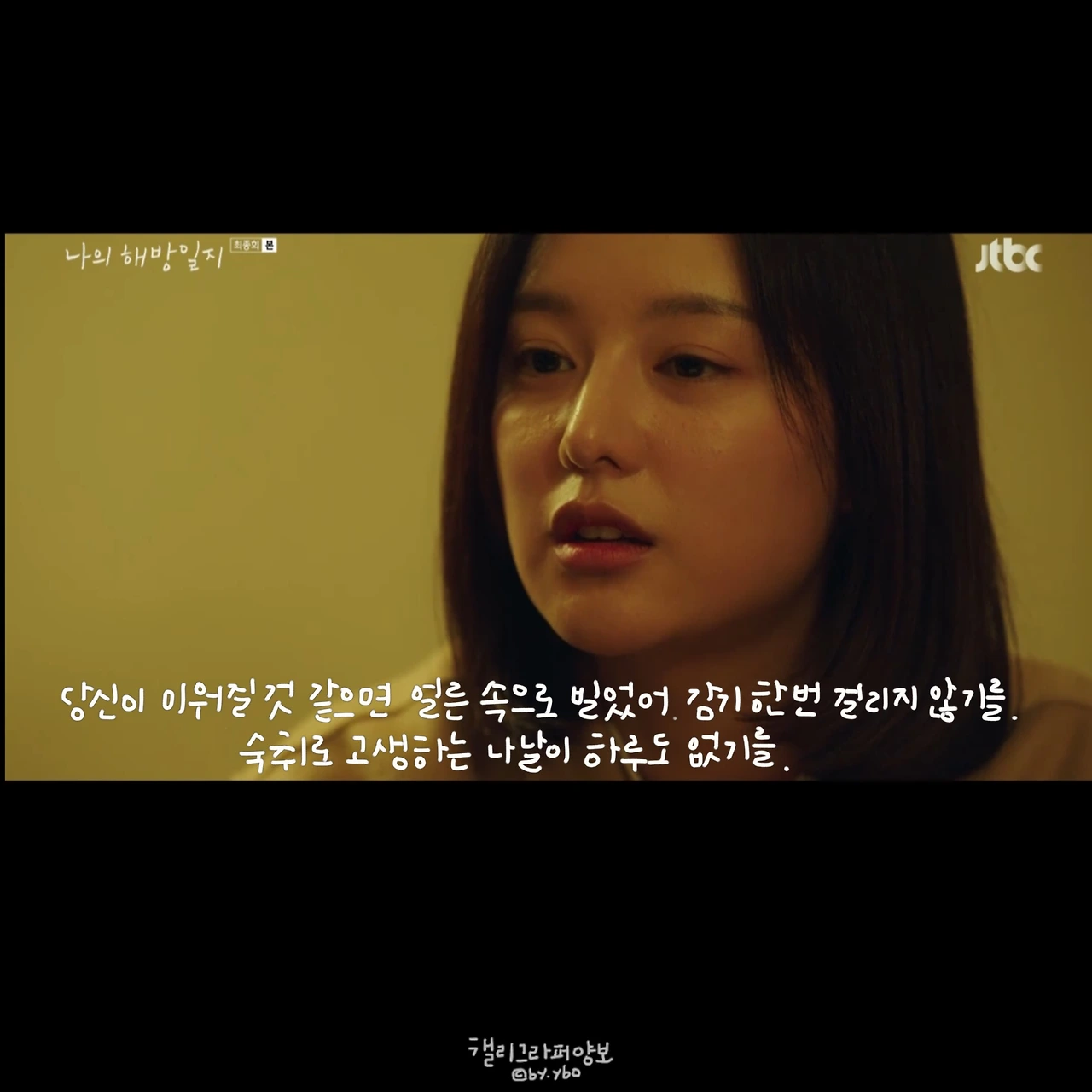 대사를 올리는 인스타그램엔 아직 10회 대사를 업로드 중에 있다. 천천히 대사를 곱씹으며 나는 나를 되짚어 볼 것이다. 그리고 쓰는 모든 글은 ‘나의 해방 일지’가 되겠지. 기정과 창희의 해방도 언제 따로 적고 싶다. 그게 아니어도 한동안, 아니 꽤 오래 이들이 말하던 모든 대화는 자주 나의 글에 인용될게 보인다.