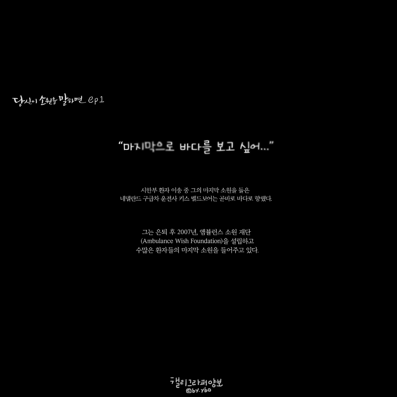 시한부 환자들의 마지막 소원을 들어주는 자원봉사자들을 ‘우리 호스피스 병원’에서는 ‘팀 지니’라고 불렀다. 맞다, 알라딘의 소원을 들어주었던 그 지니! 지니처럼 소원을 들어주는데 그 일을 팀을 이뤄하니 ‘팀 지니’라고 불렸다. 소원을 말하면, 정말로 이뤄질 것 같은 믿음직한 이름이다. ‘팀 지니’는 드라마 <당신이 소원을 말하면(KBS, 라이프타임 2022)>에 나오는 가상의 설정이지만, 실제로 말기 암 환자의 마지막 소원을 들어주는 재단이 네덜란드에 있다. 드라마 <당신이 소원을 말하면>은 그 재단에서 모티브를 얻은 작품이다.