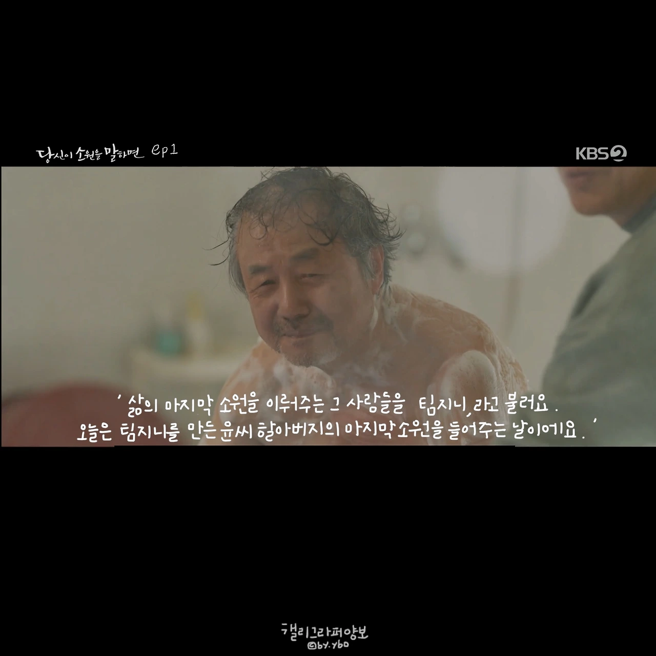 하지만 숨이 붙어 있는 한 생명은 소중하다. ‘팀 지니’는 차고 넘치는 안 되는 이유와 불가능한 상황이 아닌 윤 씨 할아버지가 마지막까지 품고 있던 소원에 시선을 두었다. 이들의 마음은 윤 씨 할아버지의 인생을 마지막까지 존중받았던 삶으로 만들었고, 삶의 끝자락까지 쌓였던 간절함의 무게를 가볍게 비워주어 마음 편히 떠날 수 있게 했다. 소원을 말하면, 이뤄줄 거란 믿음을 준 이들의 진심과 진짜로 이뤄진 소원 앞에 할아버지는 죽음에 대한 두려움보다 차고 넘치는 행복과 감사 속에 평온히 생을 마감하셨을 거라, 평온한 표정을 보며 생각했다.
