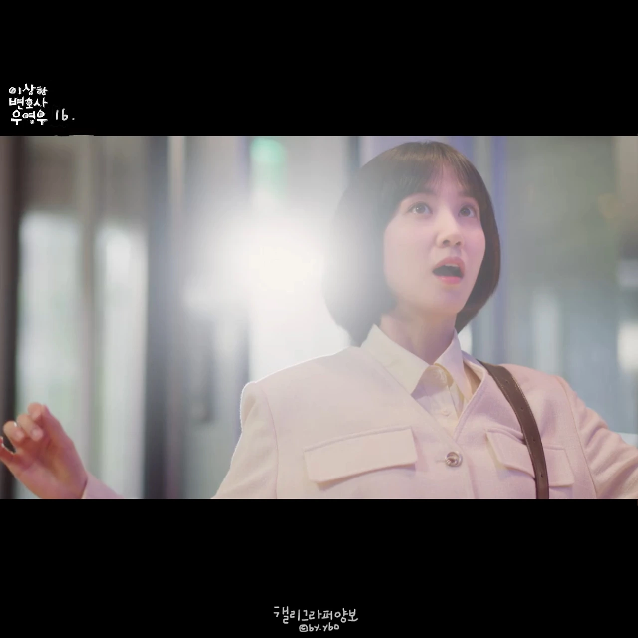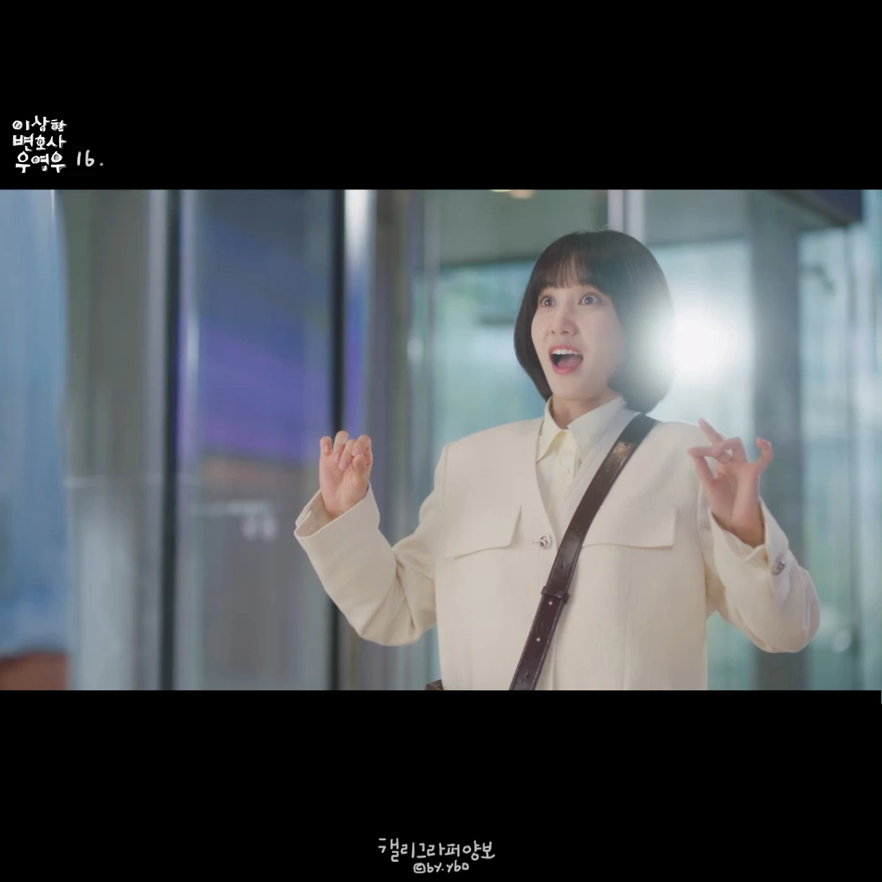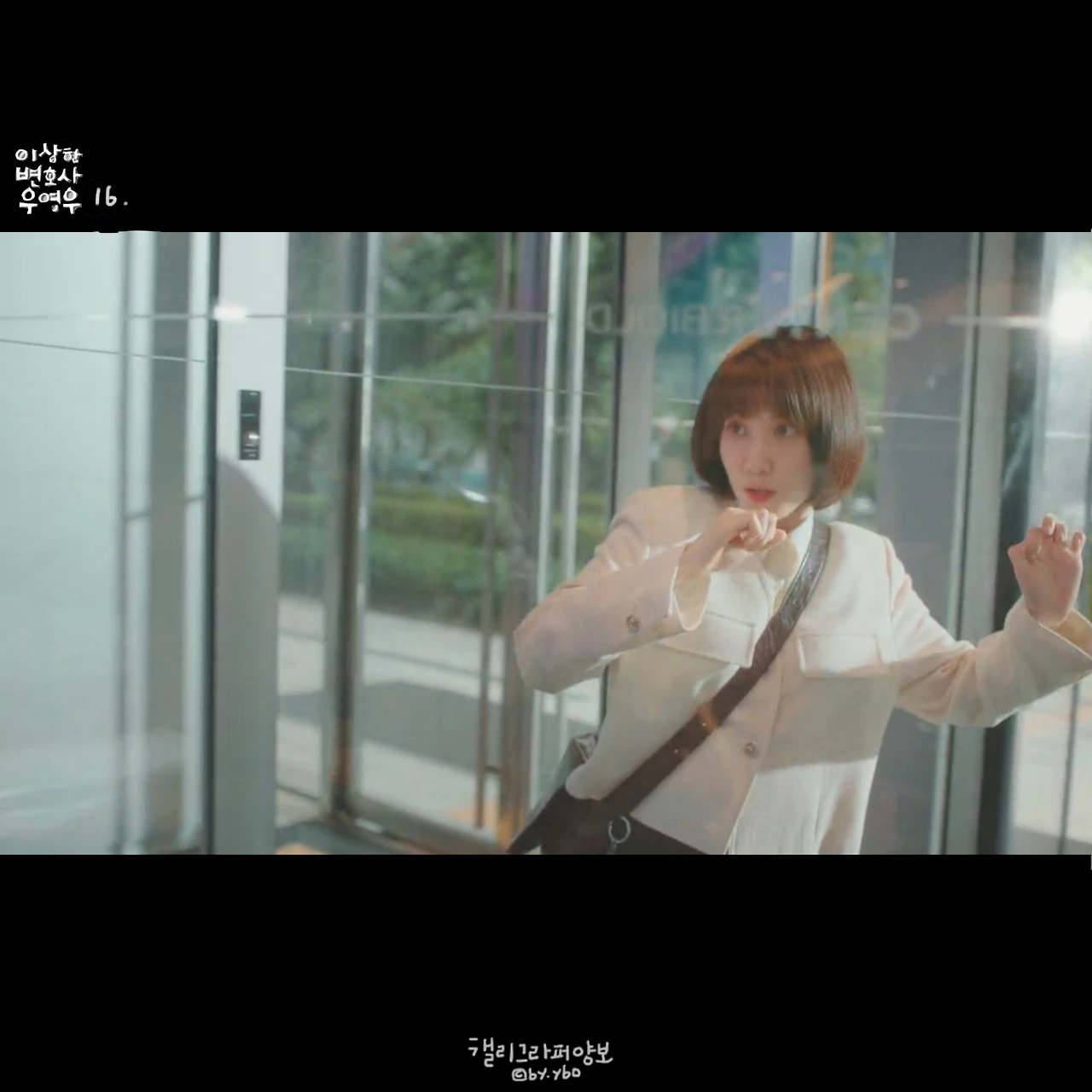 그렇게 한바다에서 일하면서 영우는 거짓말하는 의뢰인을 만나기도 하고, 장애로 차별하며 자신을 싫어하는 사람도 만났지만 그녀의 곁에서 온기를 나눠주고, 물결의 방향을 바꿔주며 때론 거센 파도를 자신의 몸으로 막아주는 좋은 흰고래 친구들도 생겼다. 좌절하는 용기를 얻으며 부딪힌 수많은 파도들에 영우는 부서지며 또 한 번 앞으로 나아가길 반복하며 단단해져 갔다. 변호사로 겪는 딜레마는 어려웠지만, 좋은 변호사가 무엇인지 고민했고 덕분에 ‘보통’의 변화가 아닌, 변호사 우영우로서의 정체성에 닿기도 한다(이 또한 1화의 정명석 대사와 맞닿아있다). 자신이 번 돈으로 아버지께 밥도 사드리며 어른이 되어가며, 이제는 이빨을 부딪히지 않고 키스하는 법도 알게 되었다. 그래서 재계약을 이뤄 정규직이 된 출근 첫날, 누구의 도움도 받지 않고 회전문을 통과한 모습은 영우가 얼마나 수고해서 이뤄낸 성장인지 충분히 와닿았으며 보는 우리에게도 울림을 주었다.