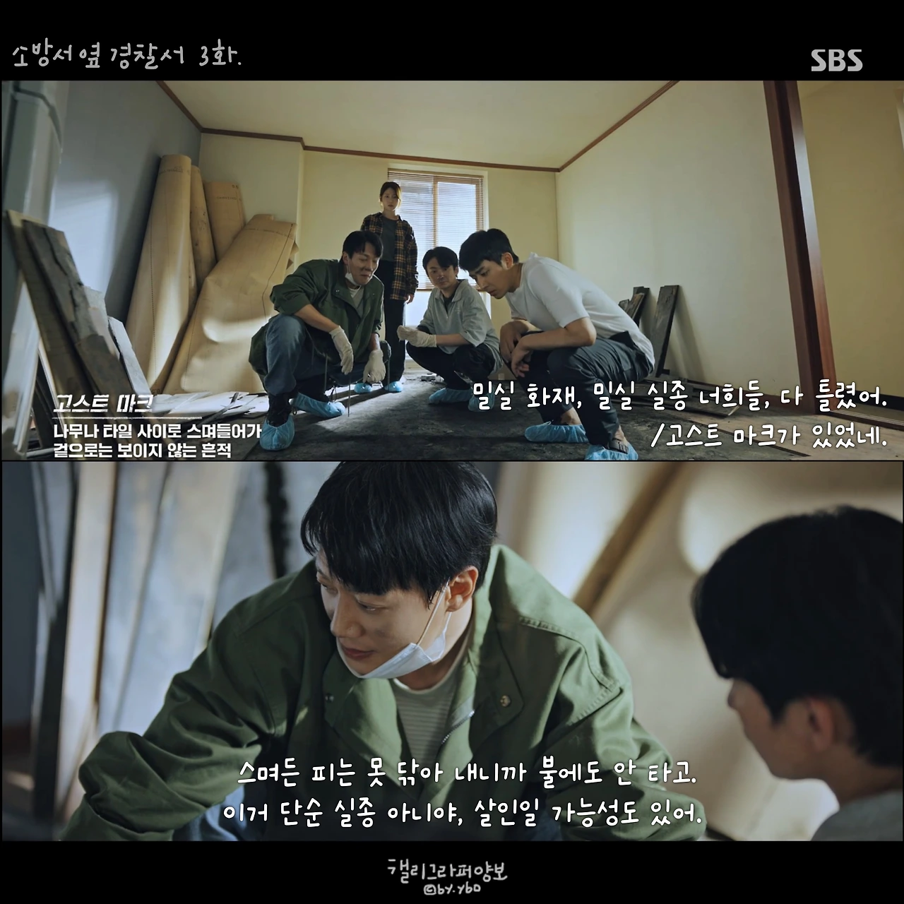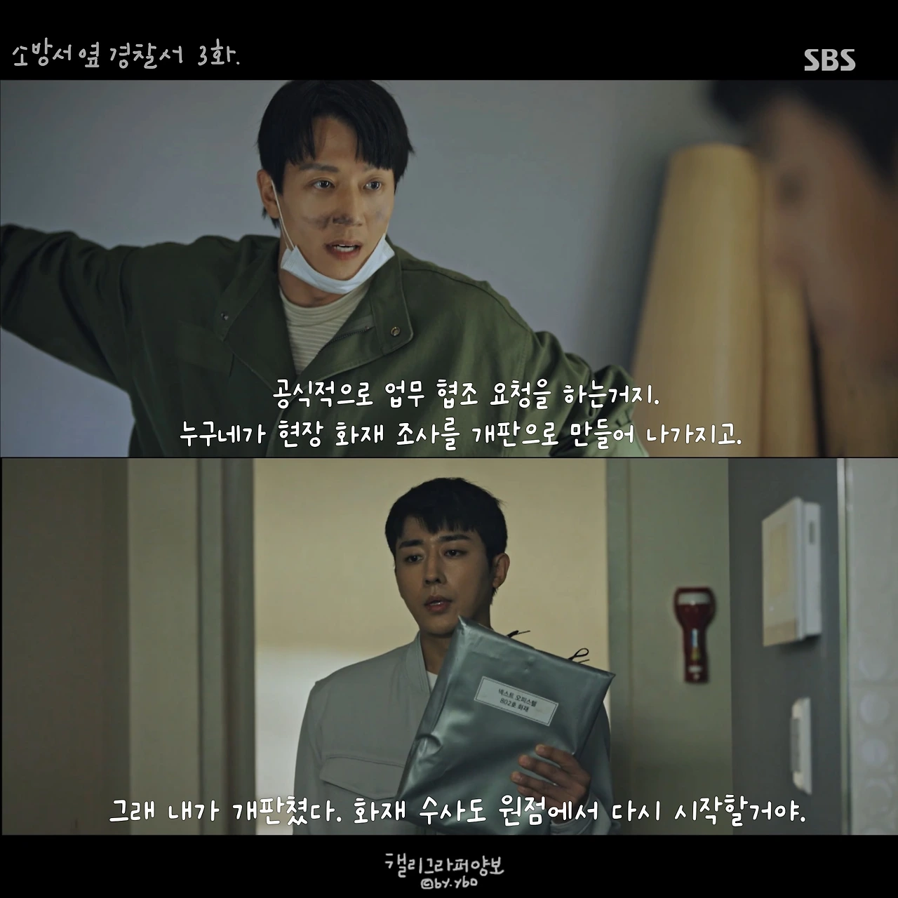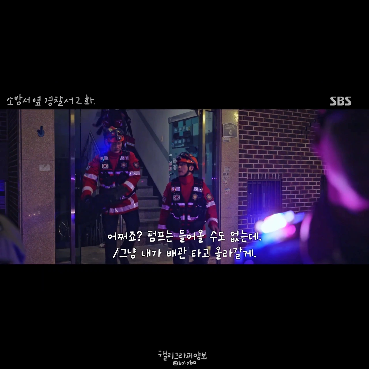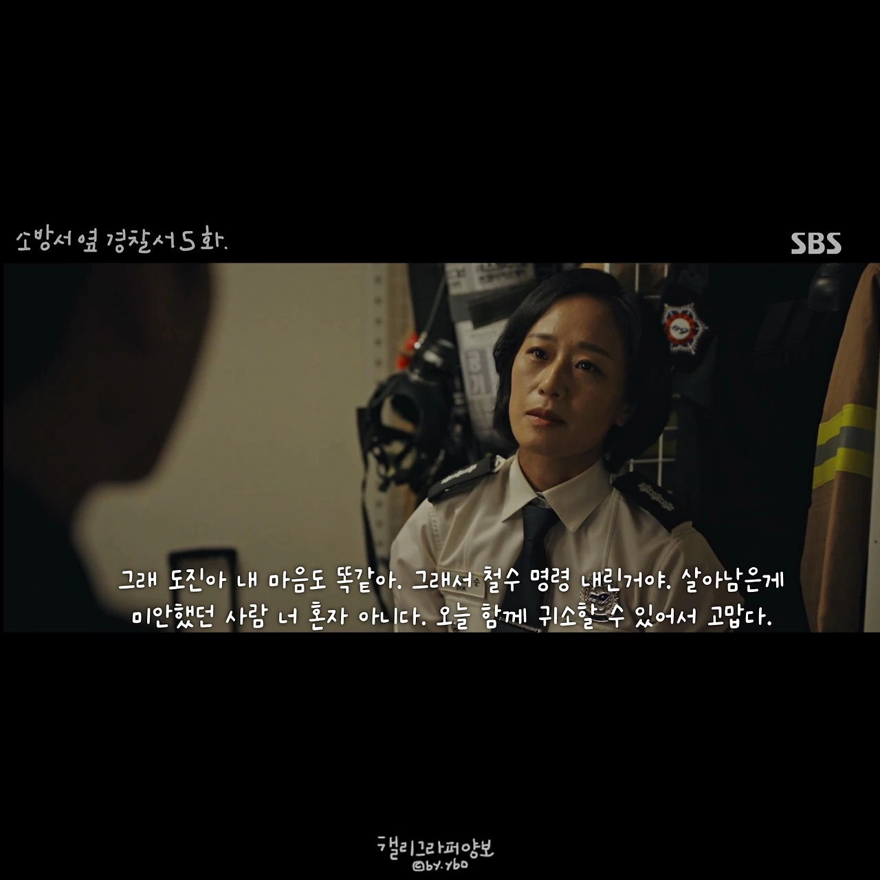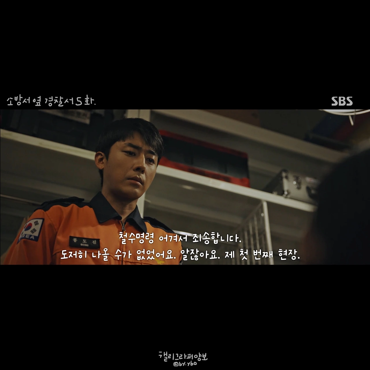 그래서 소방관에 대한 이야기도 드라마에서 많이 볼 수 있길 바랬다. 방송사의 의도 있는 편성이었는지는 모르겠지만, <소방서 옆 경찰서> 방영을 앞둔 그 주 <꼬리에 꼬리를 무는 이야기(SBS)>에서는 ‘홍제동 화재 사건’이 다뤄졌다. 요구조자를 구하려다 여섯 명의 소방관이 순직한 이 사건은 방화 사건이 일어난 사건 자체로도 이미 처참한 마음이 들게 했지만, 그보다 더 마음을 무너트리고 분노하게 한 이야기는 따로 있었다. 불을 꺼야 하는 소방관들이 방화복을 사재로 구매해야 했던, 당시 소방관의 처우다.