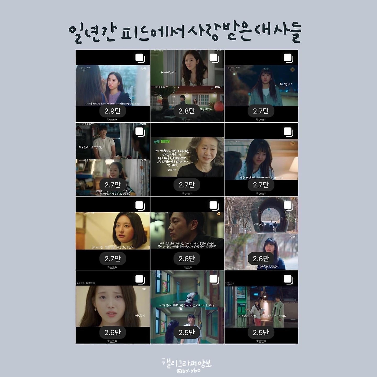 연말이 되면 한 해동안 시청한 드라마를 정리해 본다. 차곡차곡 쌓인 인스타그램 피드를 거슬러 올라가다 보면 올 한 해 있었던 개인적인 일들이 작품들과 함께 떠오른다. 이제는 드라마와 나의 시간을 따로 떨어져 놓고 생각하기 어려워진 듯하다.