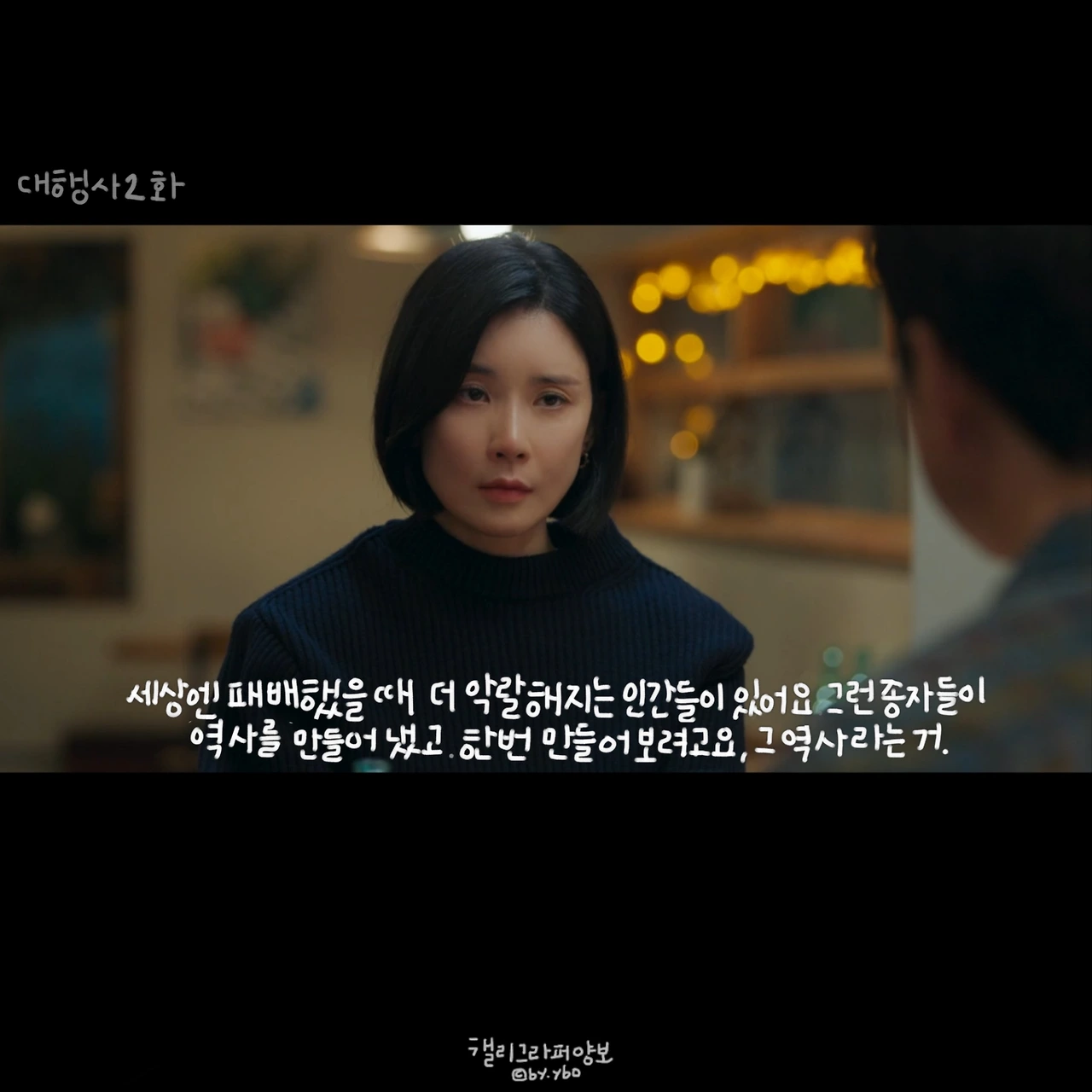 “세상엔 패배했을 때 더 악랄해지는 인간들이 있어요. 그런 종자들이 역사를 만들어 냈고. 한번 만들어 보려고요. 그 역사라는 거.”