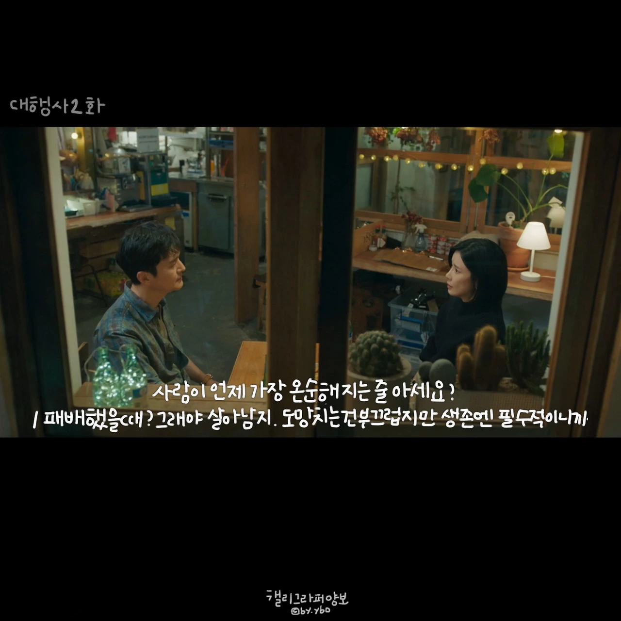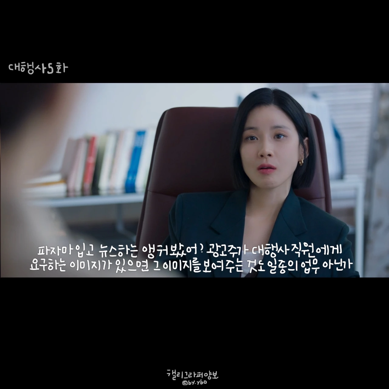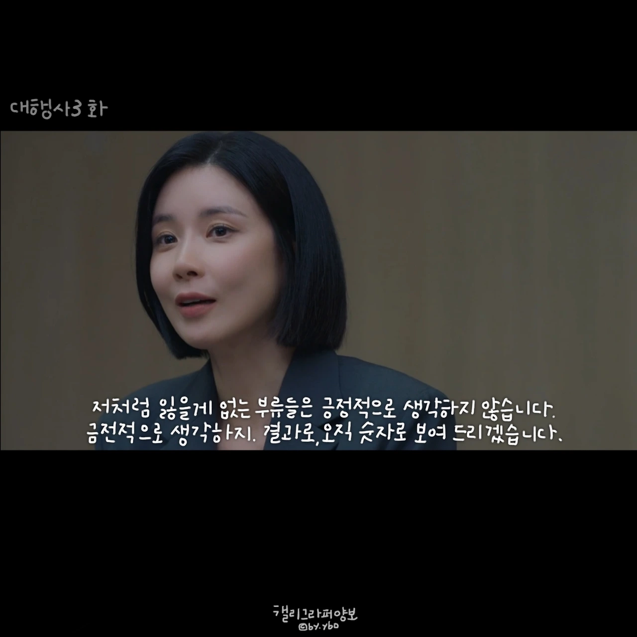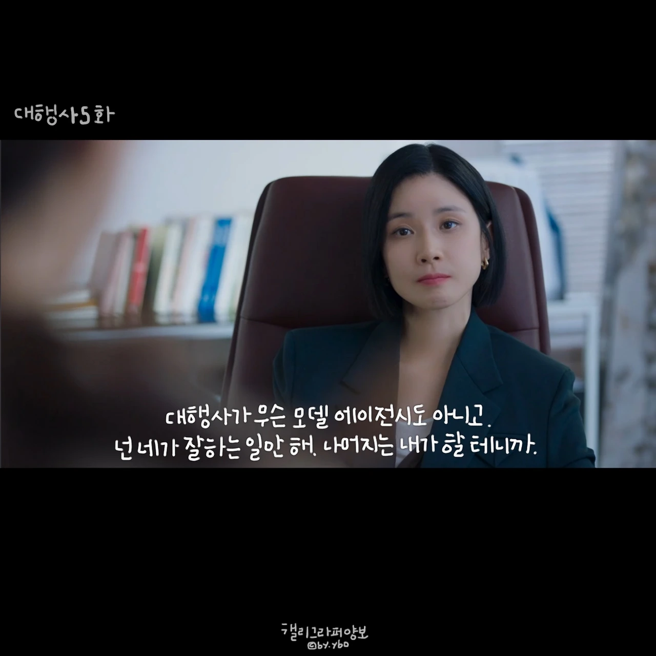 그래서인가, 이 드라마를 보면 자극받는다는 반응들이 있다. 그리고 그건 나도 마찬가지다. 고아인처럼 전략적으로 사고하고 미친년처럼 행동해보고 싶어졌다. 고아인과 나는 분명 거리가 멀지만, 너무 잘난 고아인을 보며 상대적 박탈을 느끼는 것이 아닌 신기하게도 해내보자는 마음이 든다. 은정처럼, 원희처럼. 때론 좌절하고 넘어지고 상처받는다 해도, 눈물을 다섯 트럭 쏟아낼지언정, 누구의 정함도, 스스로도 한계를 짓지 말라고 외치는 드라마 <대행사>는 우리의 심장이 뜨겁게 만든다.