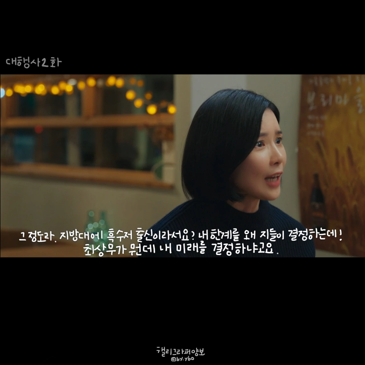 “그 정도라? 지방대에 흙수저 출신이라서요? 겨우 그 정도에 만족하려고 내가 다 포기하고 산 줄 알아요? 내 한계를 왜 자기들이 결정하는데, 최 상무가 뭔데 내 미래를 결정하냐고요!”