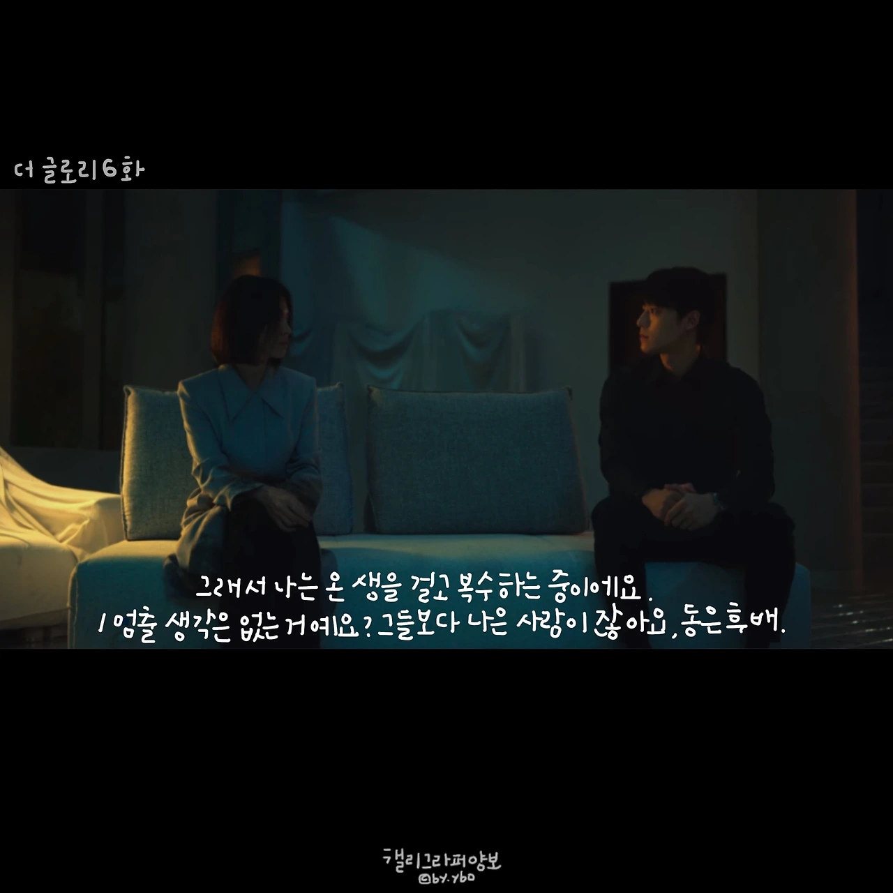 동은은 복수는 하지만, 자신의 손에 피를 묻히는 일은 없을 거라고 했다. 한국 드라마 정서상 주인공이 사람을 죽이는 일은 해선 안된다. 그 선은 넘을 수 없다. 작가님이 이러한 사정을 염두하고 복수를 설계한 것인지는 모르겠지만, 동은의 복수는 가해자들의 삶에 아주 작은 균열을 낼 뿐이었다. 무려 18년을 공들인 균열이다. 작은 틈을 무시한 결과 저들은 이 균열이 가져올 파괴력을 상상조차 하지 못했다. 오죽하면 연진은 마지막으로 기회를 주는 동은을 ’권선징악‘과 ’인과응보‘와 함께 비웃는다.
