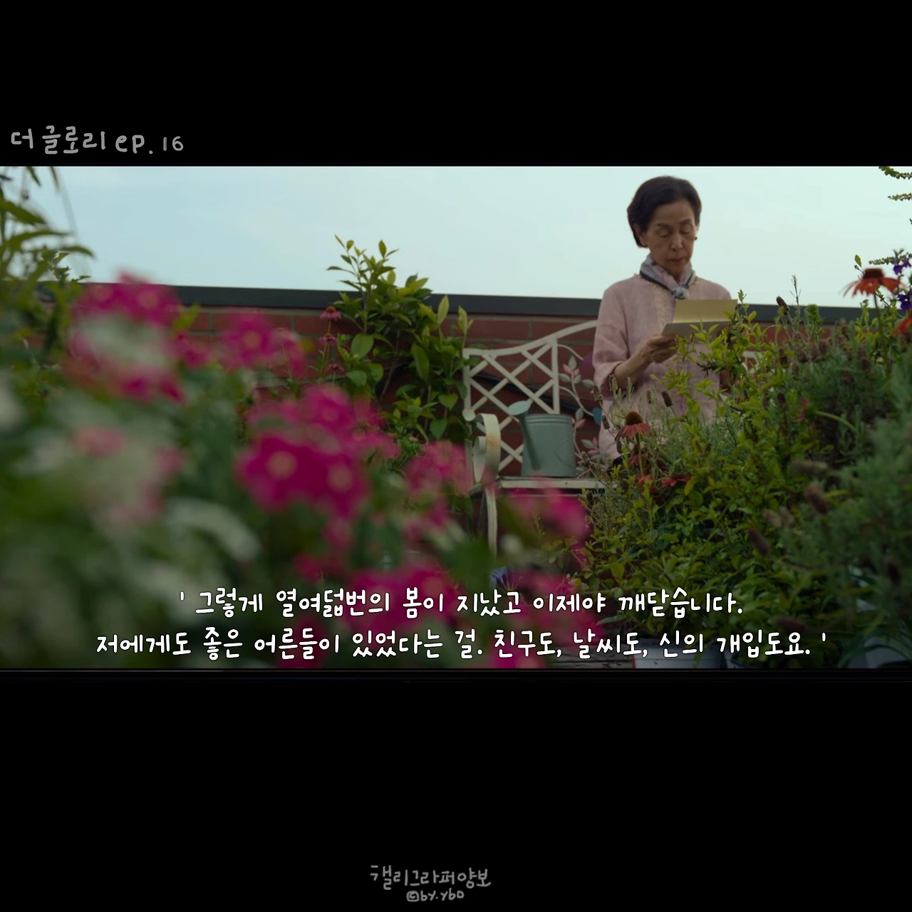 캠퍼스를 나오는 모습 뒤로 동은의 편지가 읽힌다. 언제가 너무도 추웠던 겨울, 한강에서 자신이 구한 부동산 할머니에게 보낸 편지였다. 이제 편지의 주인공도 더 이상 연진이 아니다. 그렇게 원점에서 동은은 자신에게 좋은 어른이, 친구가, 날씨도, 신의 개입도 있었음을 깨닫는다.