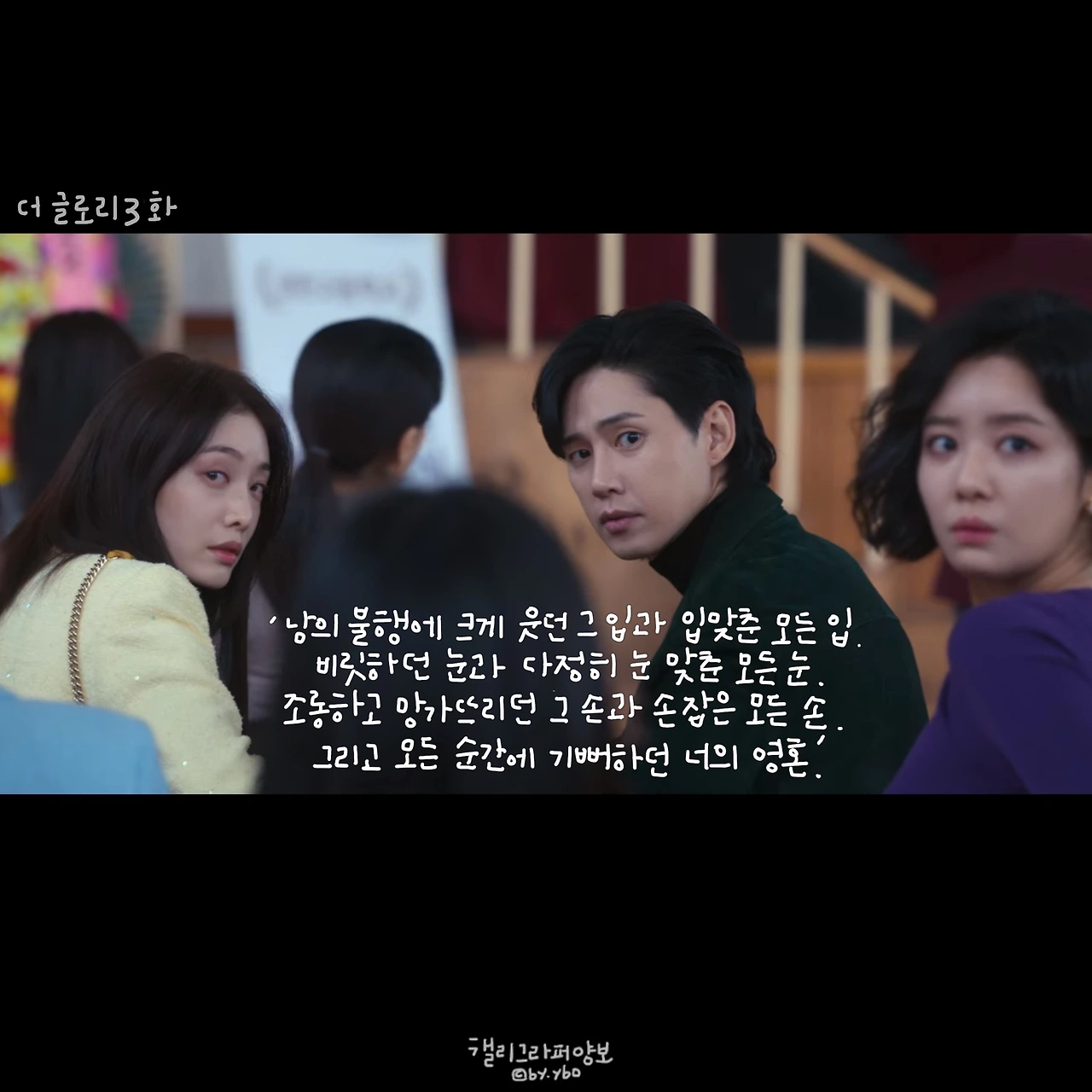 그런 측면에서 보면 이모님의 복수도 악의 자멸이었다. 이모님의 남편 안에 있던 탐욕이 스스로의 눈을 멀게 하여 덥석 '미끼'를 물게 했다. 물론 ‘미끼’를 던진 건 동은과 이모님이다. 그리고 연진과 다른 네 사람이 서로의 잘못을 공격하며 무너지게 만든 것 또한 동은이 만든 판이었지만, 저들의 무지와 외면, 탐욕은 꼭 동은이 아니었어도, 죄의 대가를 치르게 됐을 거란 생각이 들었다. 그래서 연진과 친구들 삶에 작은 균열을 만들어 스스로 무너지게 한 동은의 복수가 훨씬 더 강렬한 통쾌함을 느끼게 한 것 같다.