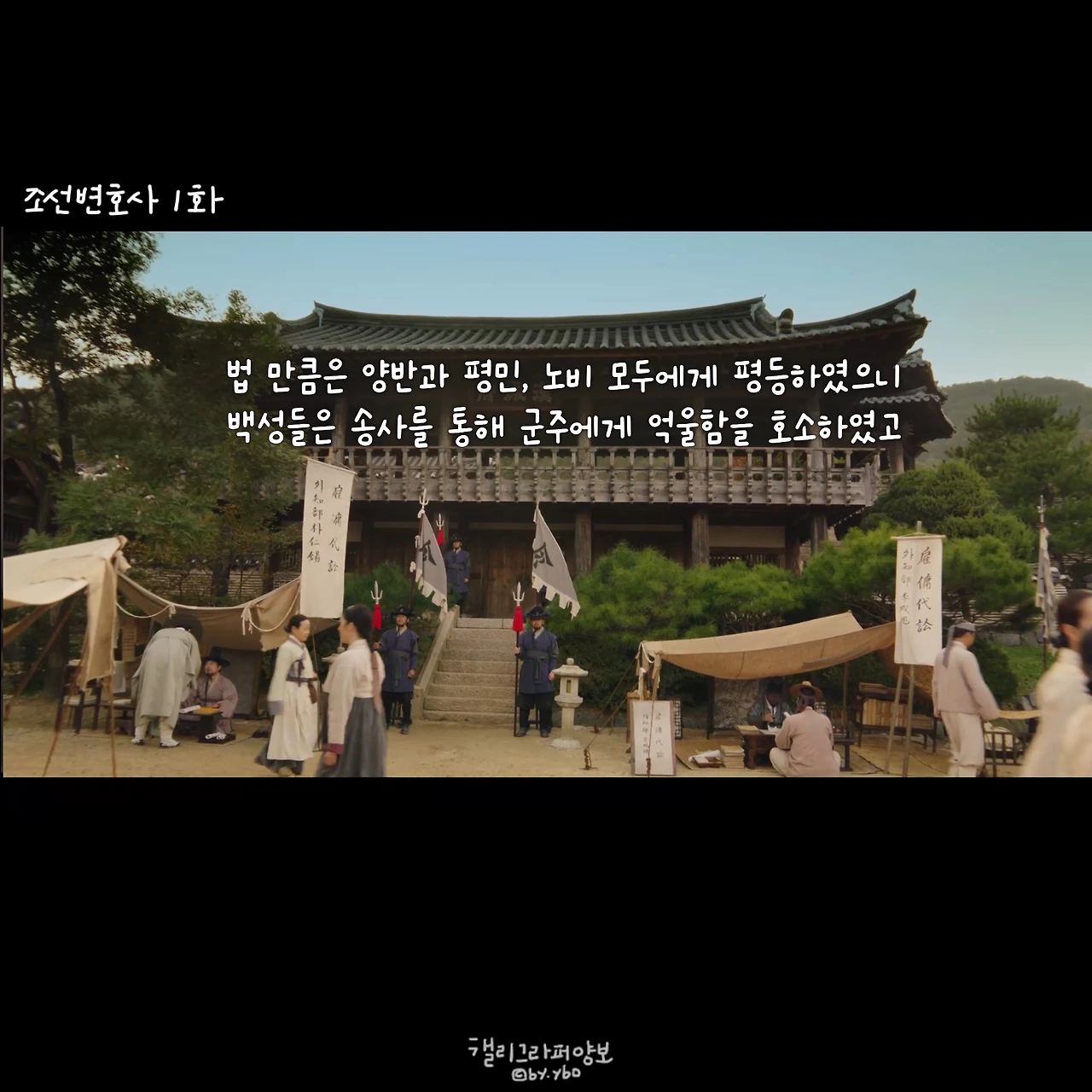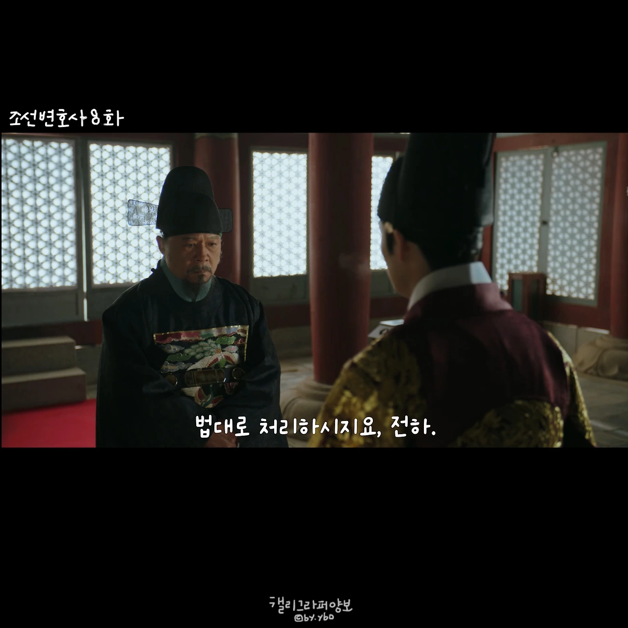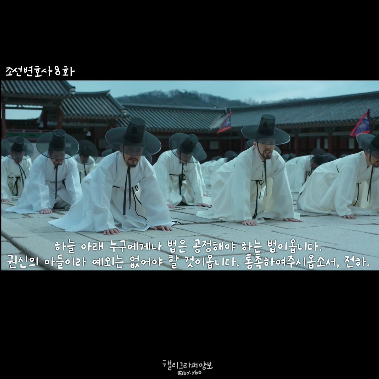 이제까지 많은 법정 드라마가 있었고 저마다 작품을 통해 전하려는 메시지가 있었다. 다만 드라마 <조선 변호사>처럼 '법', 그 자체에 집중한 드라마는 없었다. 지금 우리에게 법은 숨 쉬듯 자연스럽다. 물론 어렵고 그래서 거리감은 있을지 모르지만, 법의 존재만큼은 자연스럽게 받아들인다. 하지만 조선시대는 그렇지 않았다. 법원 사이트에 나와있는 사법제도의 변천을 보니 조선시대에 이르러 사법기관이 생기고 형벌과 재판제도, 판결문, 재판 법규가 마련되기 시작한 듯 보인다. 조선시대를 법치국가로 보지 않은 듯 하지만, 드라마적인 시선으로 해석해 보자면 조선이란 배경은 국가에 '법'이란 제도가 뿌리내리는 시작점으로, 여느 드라마들과 달리 '법'의 본질에 대해 우리로 하여금 생각하게 할 수 있게 한다. 법이 나아가야 하는 방향은 소수의 특권층을 위한 것도, 뺏고 잃게 하기 위한 것이 아닌 억울한 사람들의 손수건 같은 것이어야 한다고 말이다.