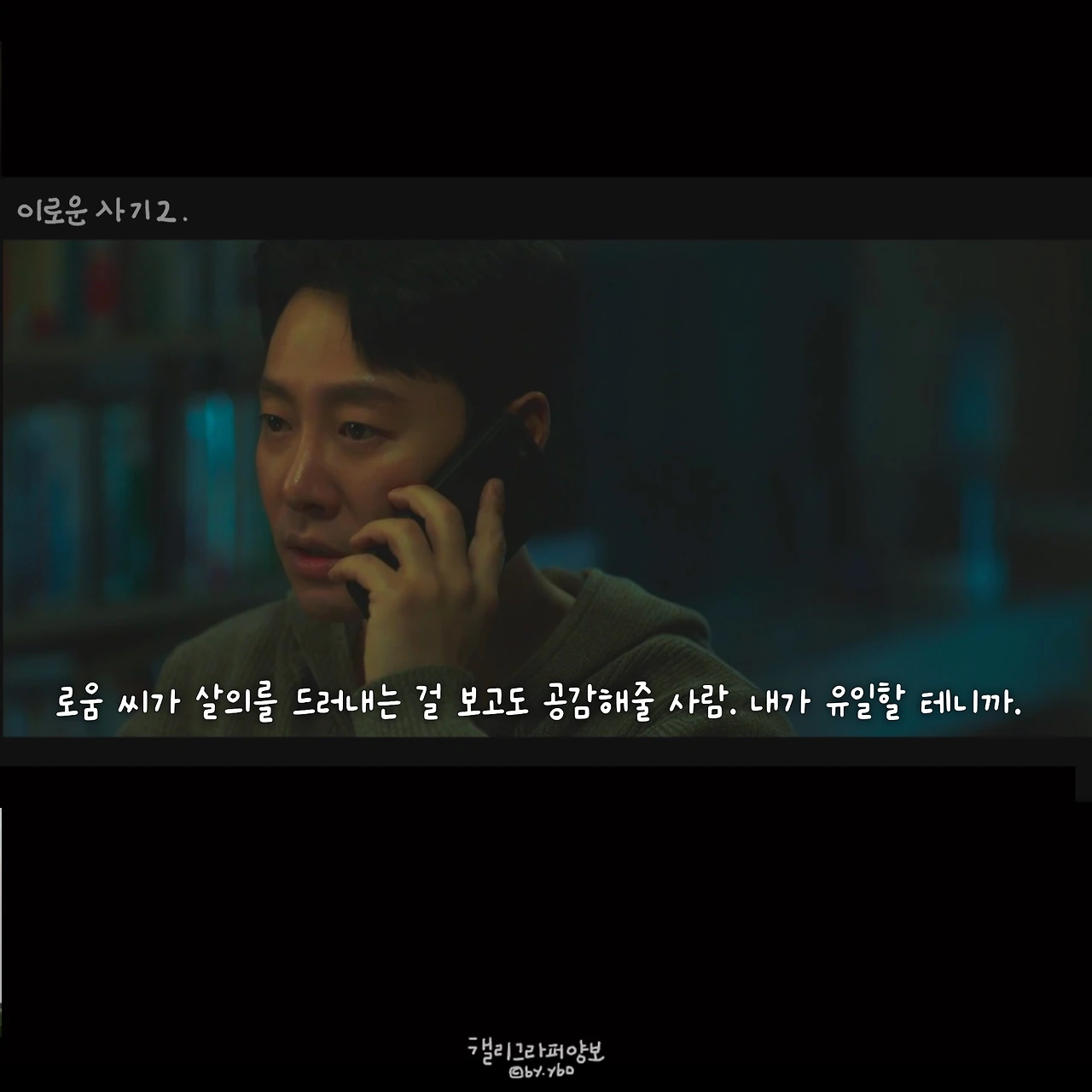 무영은 변호사의 커리어를 포기하면서 로움을 도왔다. 그리고 말했다. 당신이 하려는 게 뭐든-그것이 복수든- 내가 돕겠다고. 로움의 호구가 되겠다는 게 아닌 로움의 친구가 되겠다는, 무영의 자발적인 선택이다. 그런 무영을 거절하는 로움에게 무영은 자신을 결코 버리지 못할 거라고 했다. “로움 씨가 살의를 드러내는 걸 보고도 공감해 줄 사람. 내가 유일할 테니까.”