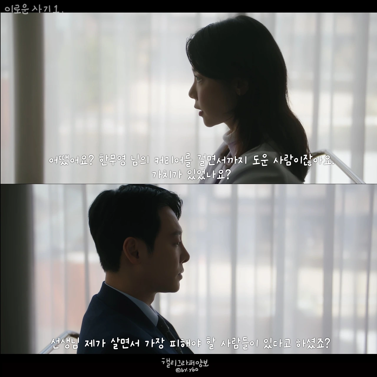 드라마 기획의도에도 나와 있지만 “공감”이 서점을 가득 채웠던 때가 있었다. 어디서나 쉽게 “공감”을 들을 수 있었고, 아직도 세상엔 이 단어가 넘쳐난다. 하지만 아이러니하게도 세상은 여전히 공허하다. 어디로도 연결되어 있다는 느낌을 받기 어렵다. “공감”이 부재해 “공감”에 대해 말하는 이야기만 넘쳐나고 있는 건 아닐까. 그렇기에 나는 ‘윤리적 딜레마’와 ‘고민’ 거기에 ‘공감’과 ‘이해’를 얹은 이 드라마에 거는 기대가 생겼다.