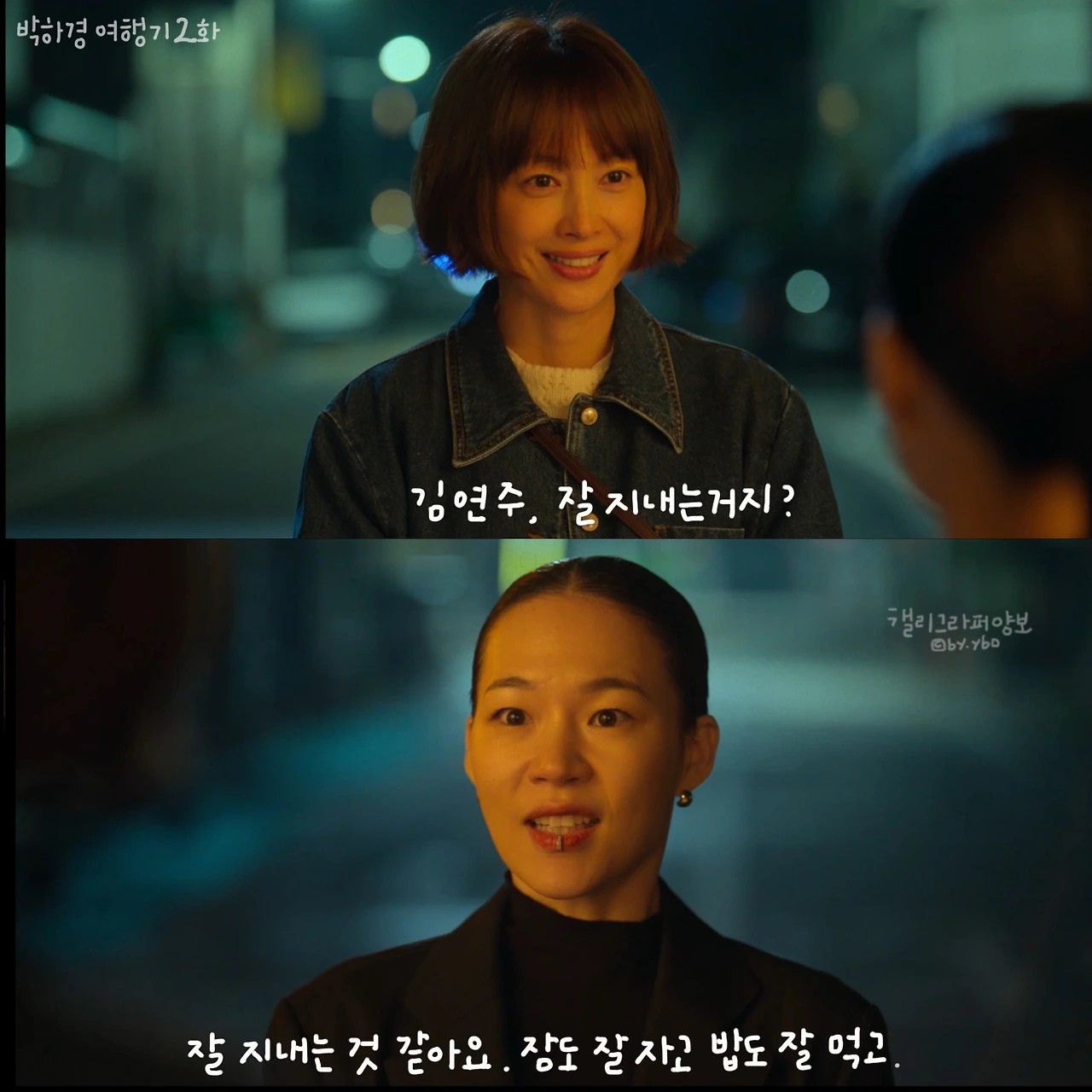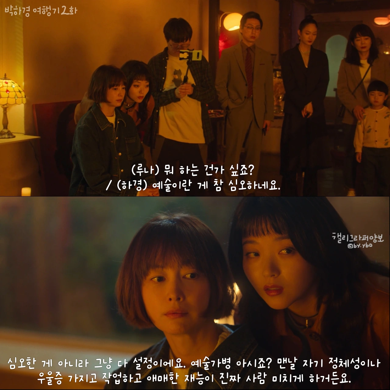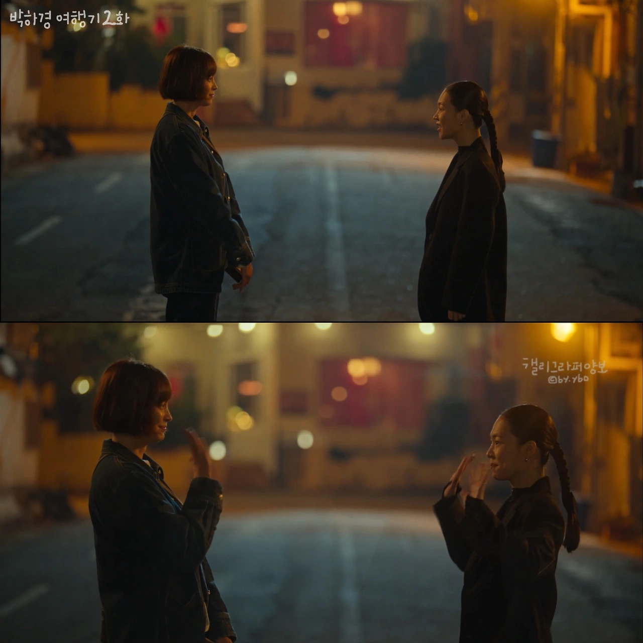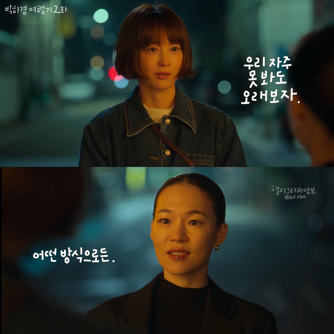 웨이브오리지널 [박하경 여행기(2023)]에선 이런 양가적 감정을 자주 느낄 수 있다. 아직 4화까지 봤지만, 시청한 모든 회차에서 이런 감정을 느꼈다. 구체적으로 설명할 수 없지만 에피소드를 보고 있으면 고개를 끄덕이게 된다. 양쪽 다 우리가 잘 아는 감정이다. 원망하고 싶은 마음도, 감사하는 마음도. 사랑하고 싶은 마음도, 무서워 도망가고 싶은 마음도. 미워하지만 미워할 수 없는 마음까지도. 20분 남짓의 짧은 시간 속에 많지 않은 대사로 복합적인 감정을 느끼고, 알고, 자연스럽게 이해하게 만든다. 모든 감정이 공감에서 비롯된, 알 것 같은 마음이라는 게 드라마에선 마주하기 힘든 신기한 경험이었다. 응원받고 싶지만 그만두고도 싶은 두 가지 마음이 내게도 있기에, 하경의 입장에 자연스럽게 내 삶이 투영되면서 연주를 응원해줘야 하는지 고민했던 것 같다.