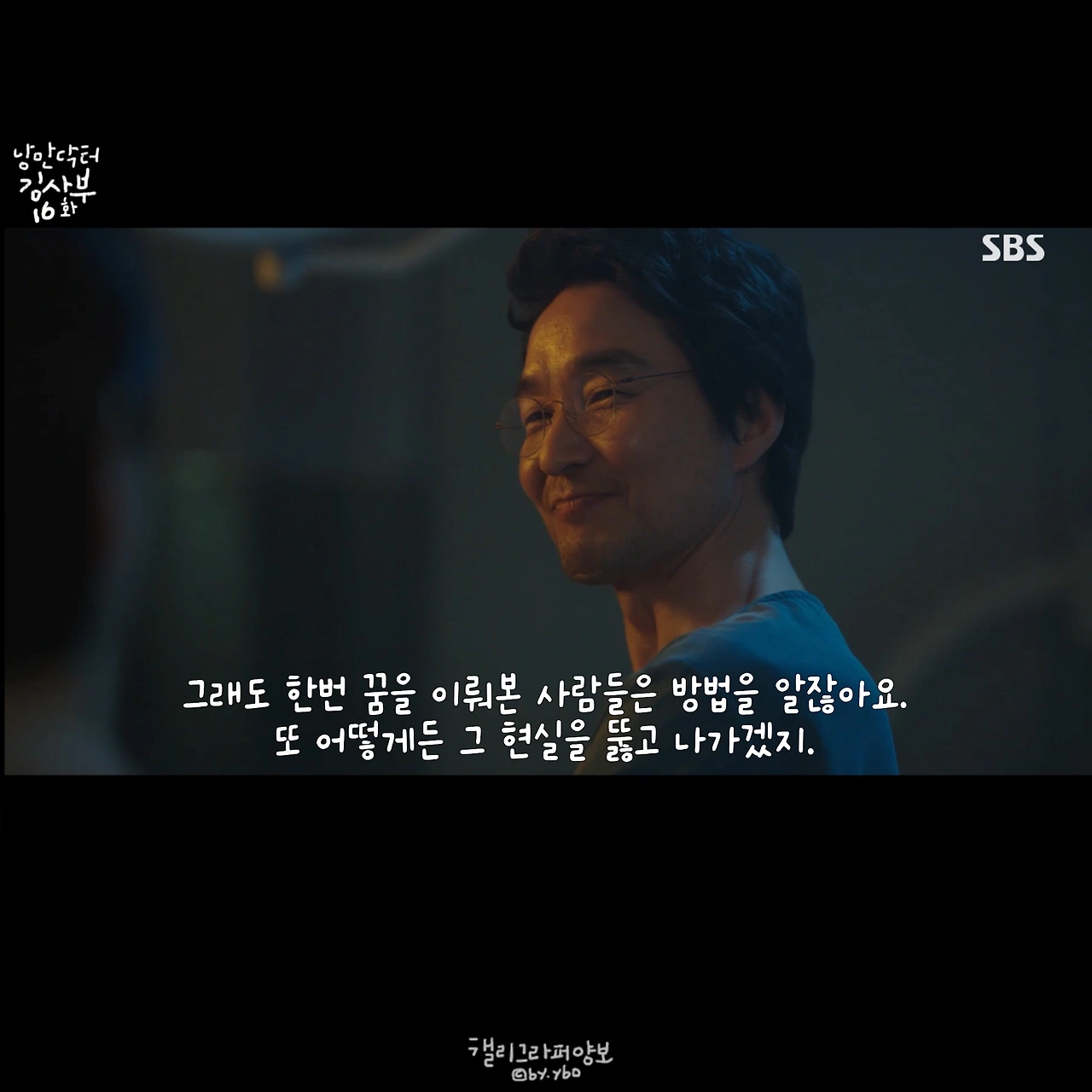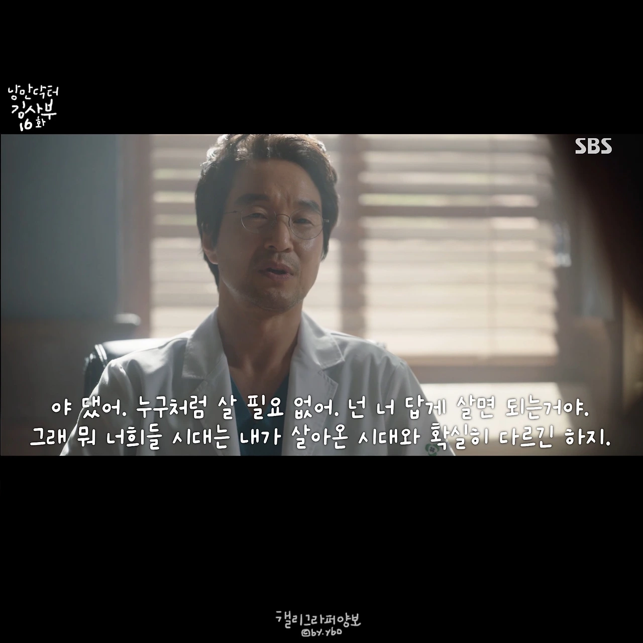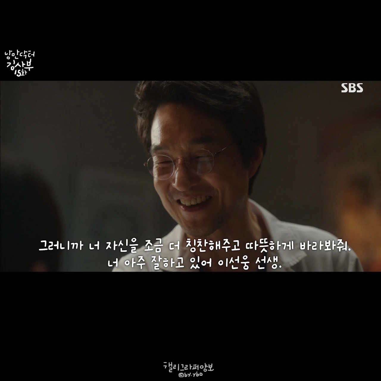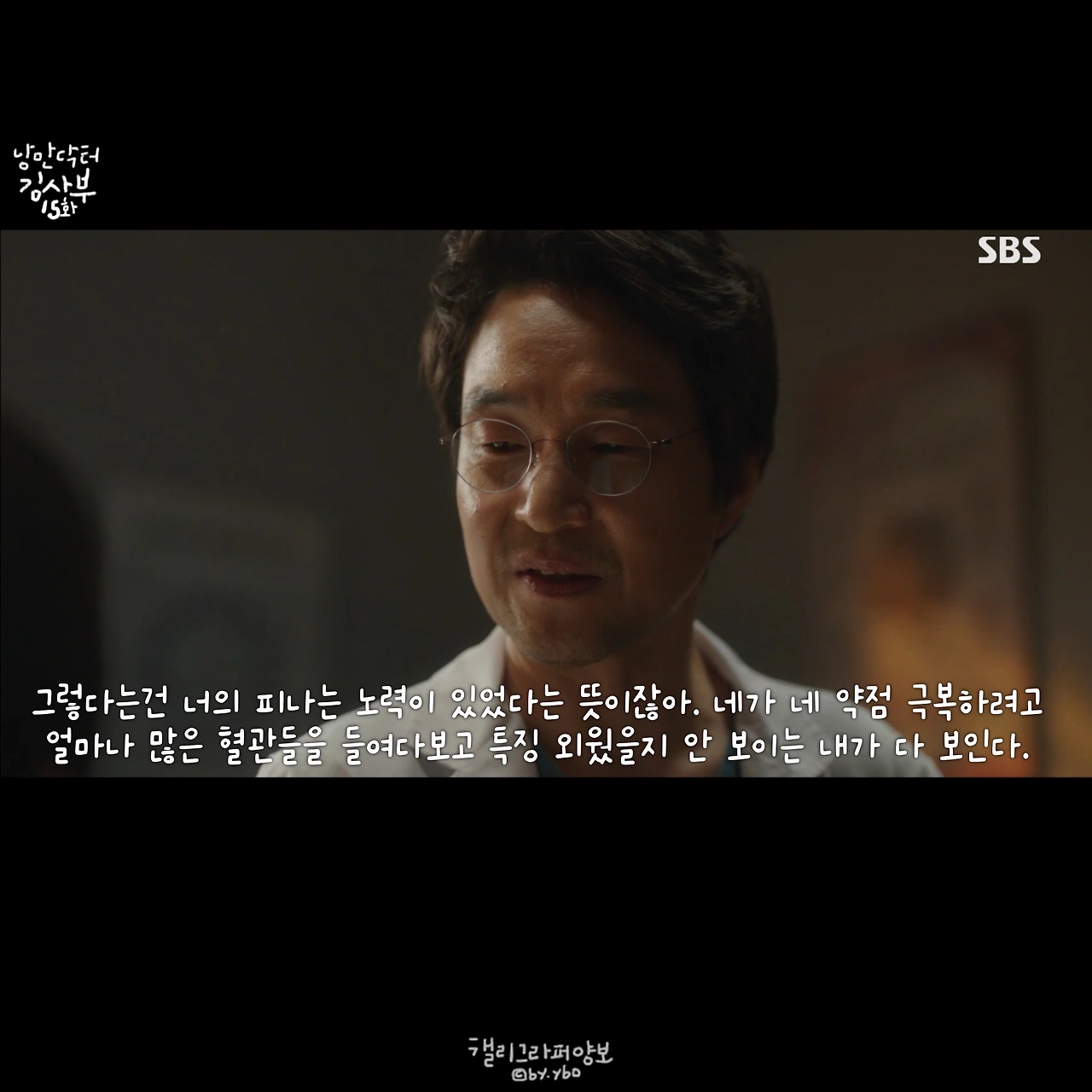 김사부가 이선웅에게 해준 대사에 몇몇 분이 프로필 사진으로, 자신의 인스타로 가져가도 괜찮냐는 댓글이 달렸다. 우리 모두 약점과 결핍을 갖고 있다. 부정하고 싶고 외면하고도 싶지만 결국 이를 끌어안고 더 노력하는 자신을 따뜻하게 바라볼 수 있게, 우리에게도 김사부의 위로가 필요하다. 나도 잘하지 못 하지만, 그래서 의식적으로 셀프 칭찬을 해줄 때가 있다. 열심을 알아봐 준, 나를 잘 아는 이의 칭찬을 거절하지 않고 마음 깊이 받기도 한다. 김사부의 말처럼 내가 나를 따뜻하게 바라봐주는 방법이다. 그럴 때 약점과 결핍은 더 이상 마이너스적 요소가 되지 않는다.