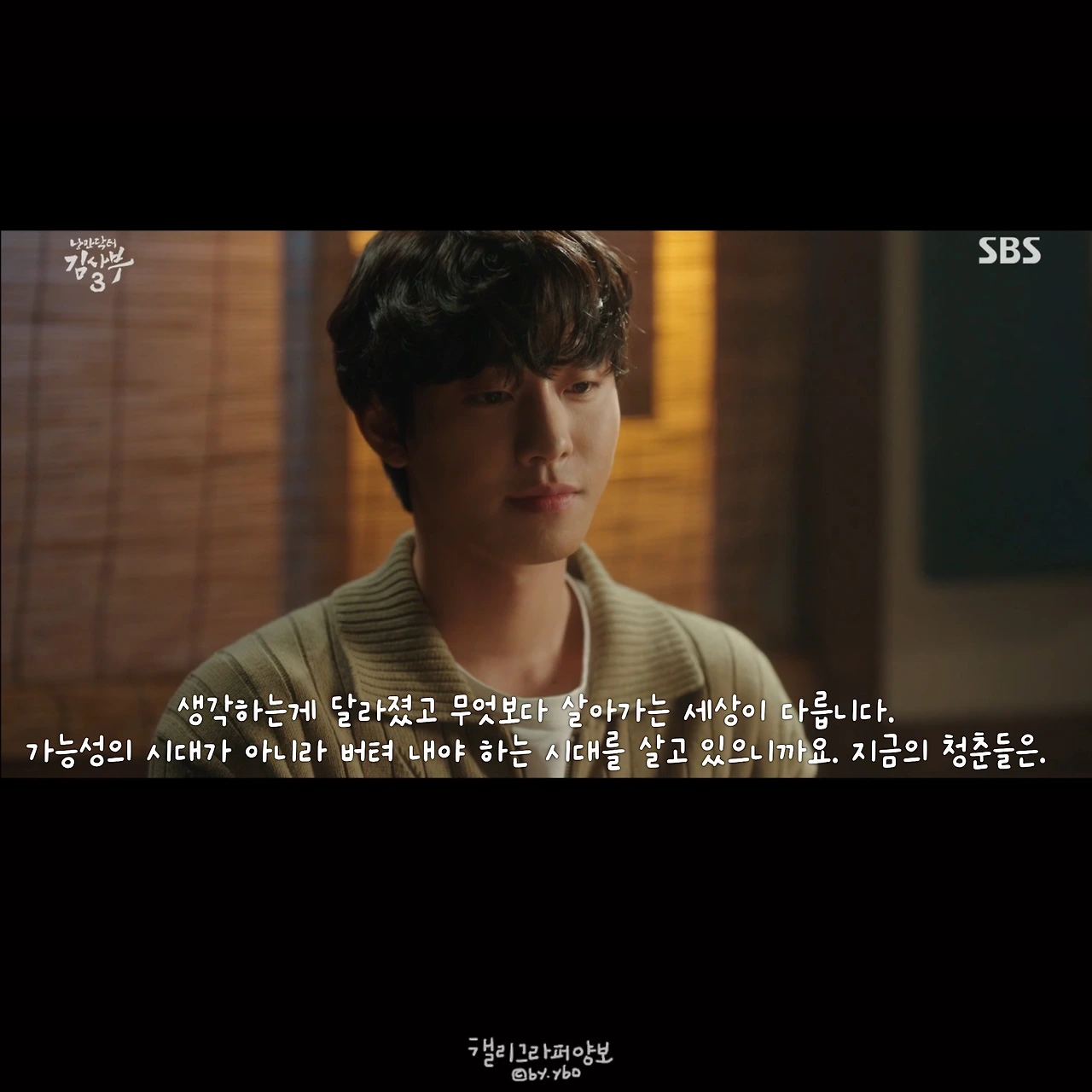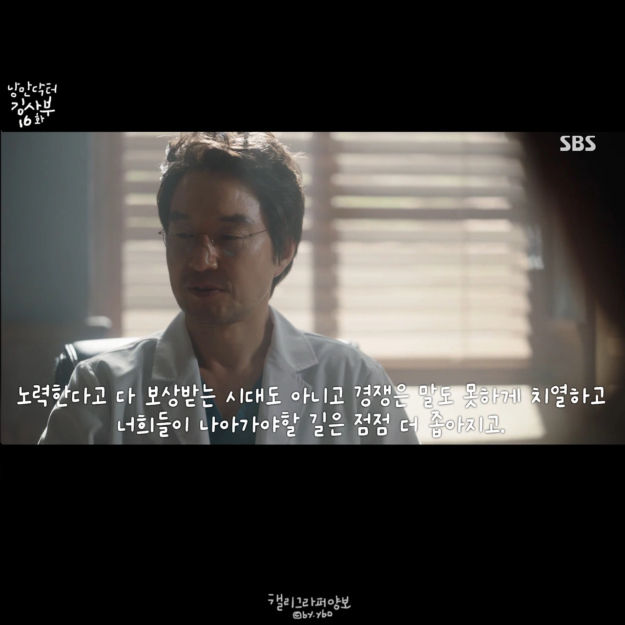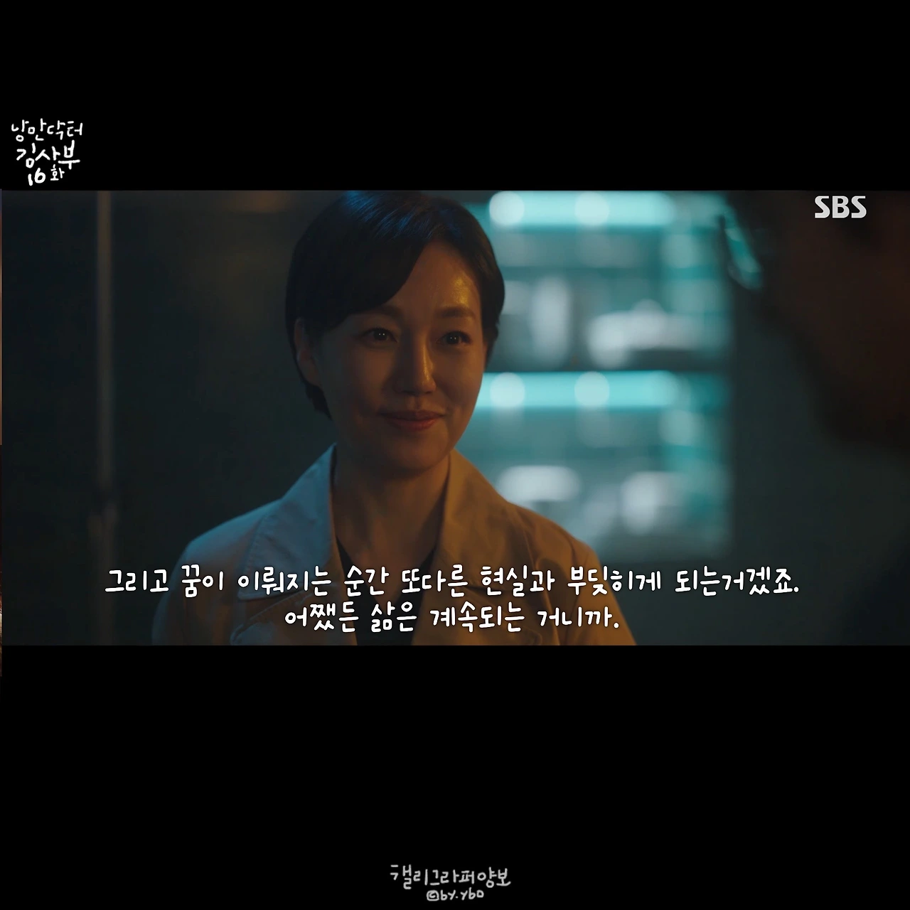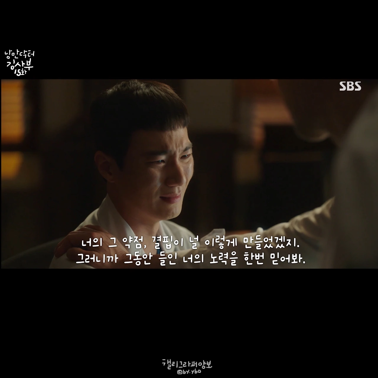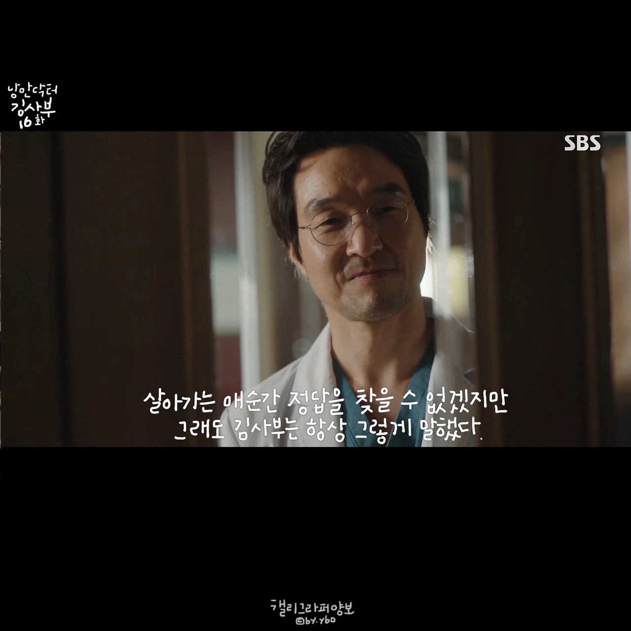 김사부가 이선웅에게 해준 대사에 몇몇 분이 프로필 사진으로, 자신의 인스타로 가져가도 괜찮냐는 댓글이 달렸다. 우리 모두 약점과 결핍을 갖고 있다. 부정하고 싶고 외면하고도 싶지만 결국 이를 끌어안고 더 노력하는 자신을 따뜻하게 바라볼 수 있게, 우리에게도 김사부의 위로가 필요하다. 나도 잘하지 못 하지만, 그래서 의식적으로 셀프 칭찬을 해줄 때가 있다. 열심을 알아봐 준, 나를 잘 아는 이의 칭찬을 거절하지 않고 마음 깊이 받기도 한다. 김사부의 말처럼 내가 나를 따뜻하게 바라봐주는 방법이다. 그럴 때 약점과 결핍은 더 이상 마이너스적 요소가 되지 않는다.