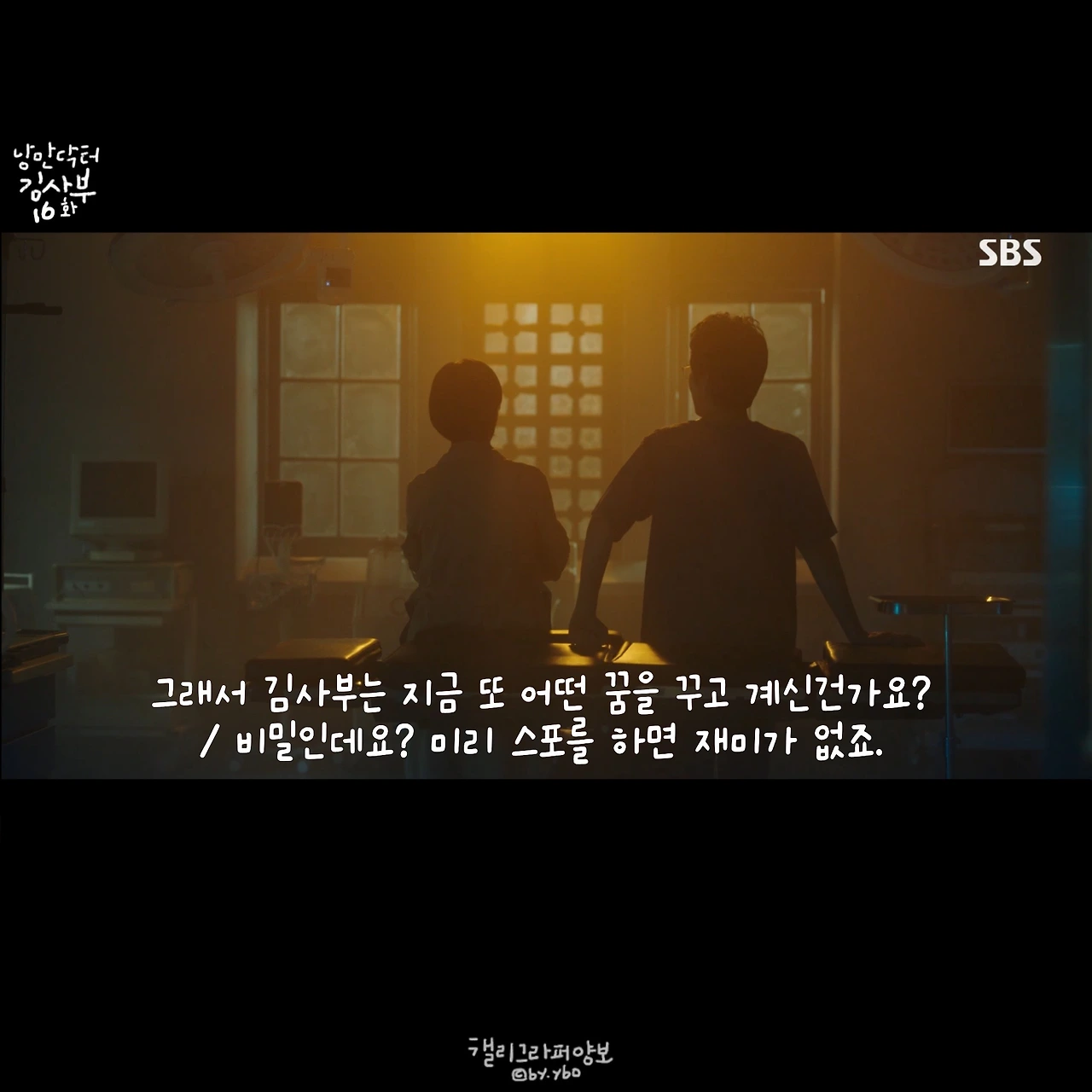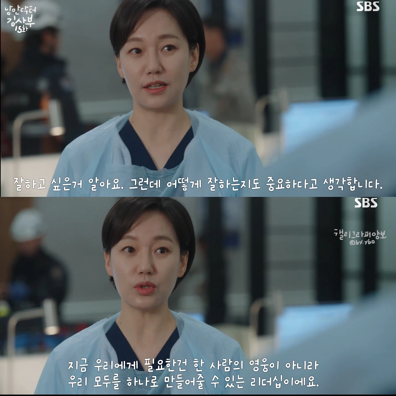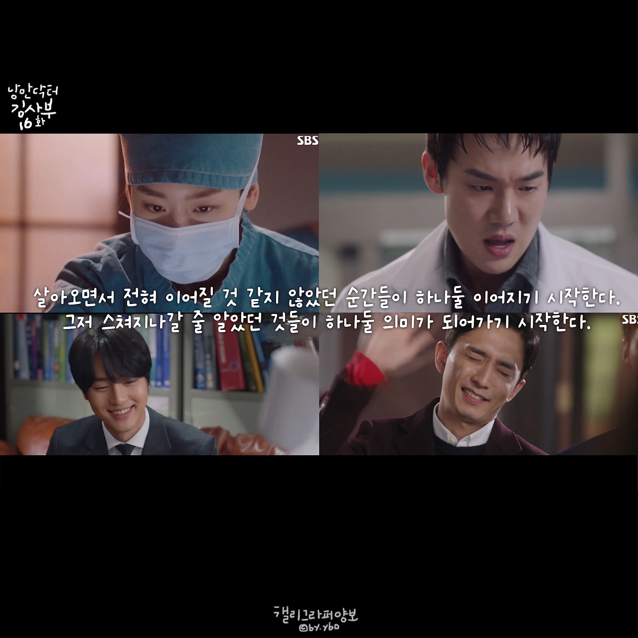 우린 서로 달라서 더 나은 나를, 우리를 만들어 갈 수 있는 것 같다. 마음이 통하기까지 과정이 쉽지 않지만 이런 노력이 김사부가 추구하는 낭만에 포함되어 있다. 우리가 추구해야 할 낭만이기도 할 테고.