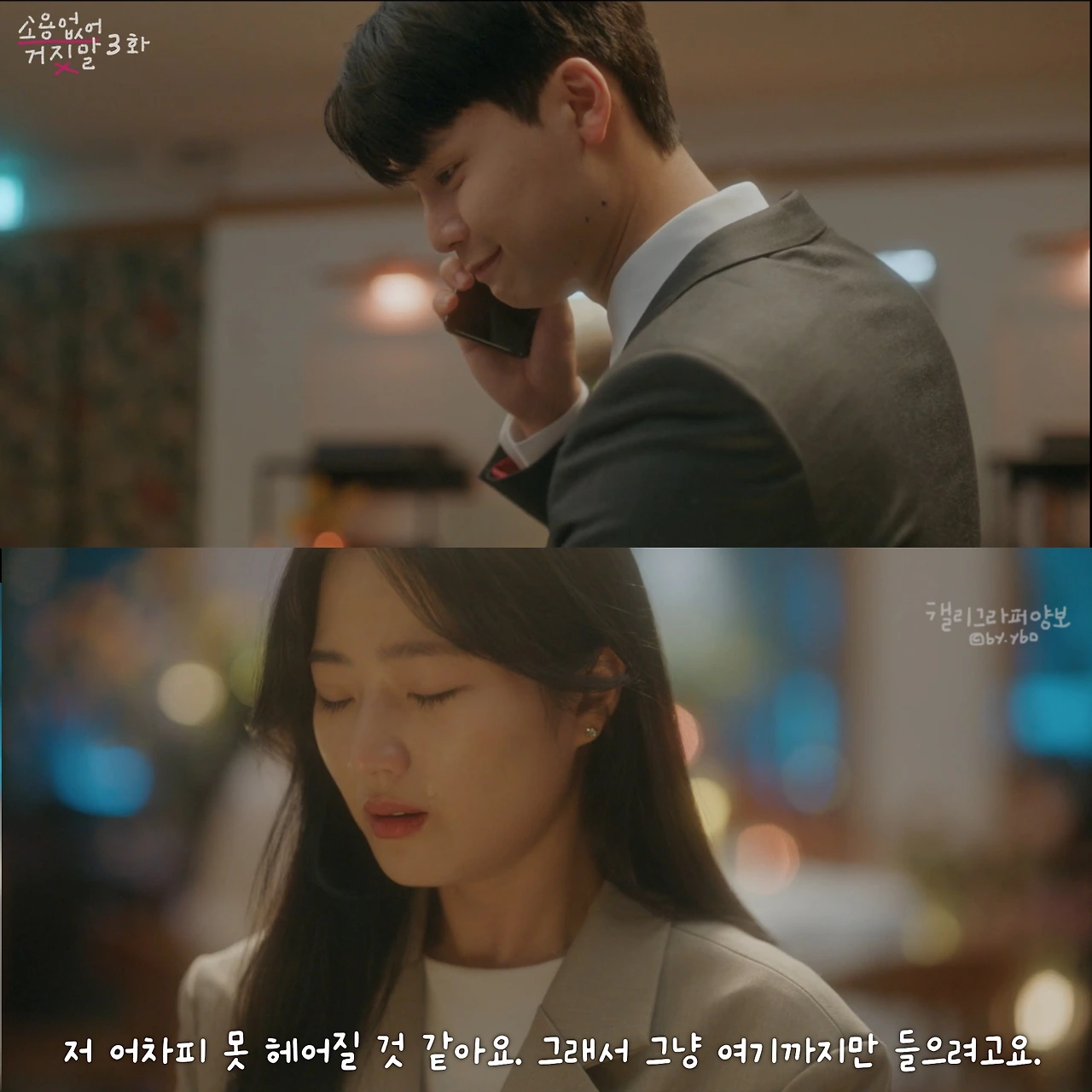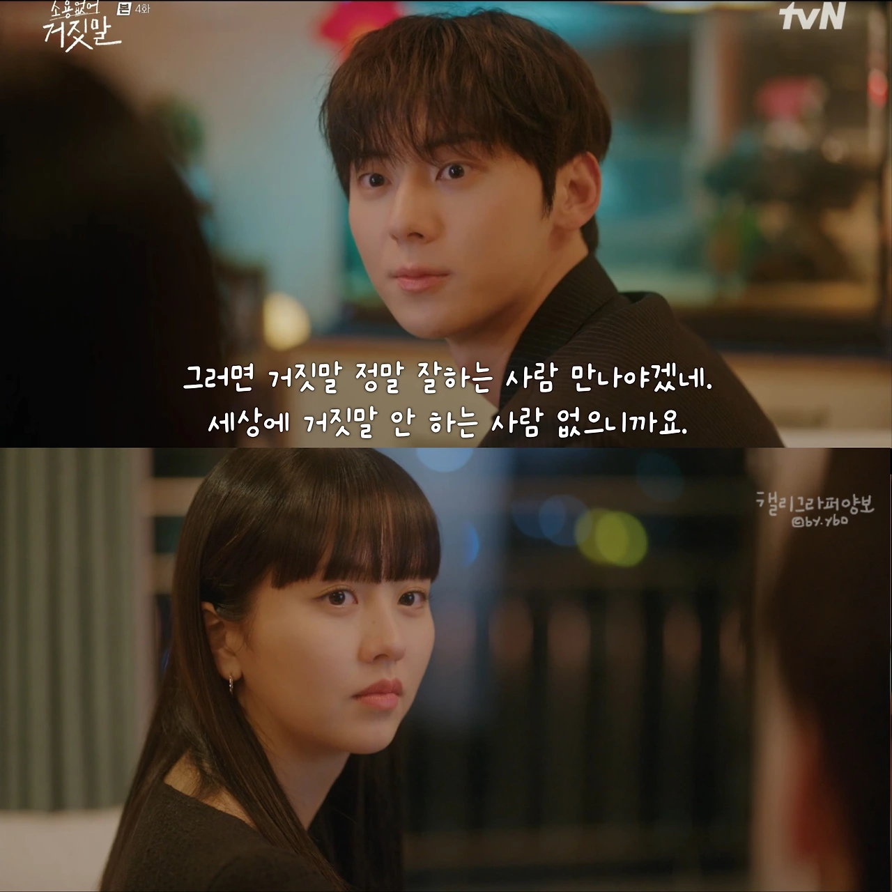 사실 비주얼에 집중해 가볍게 보려고 한 드라마인데 ‘거짓말’을 통해 ‘말’ 이면에 담긴 '마음의 진심'에 닿는 일을 생각하게 되었다. 그 ‘진심’에 닿기까지 우린 얼마나 많은 순간을 헤맬까. 그렇다 해도 “우리의 오랜 떠돎은 결국 무용하지 않았다고*,” 말하게 될 엔딩의 순간을 기다린다.