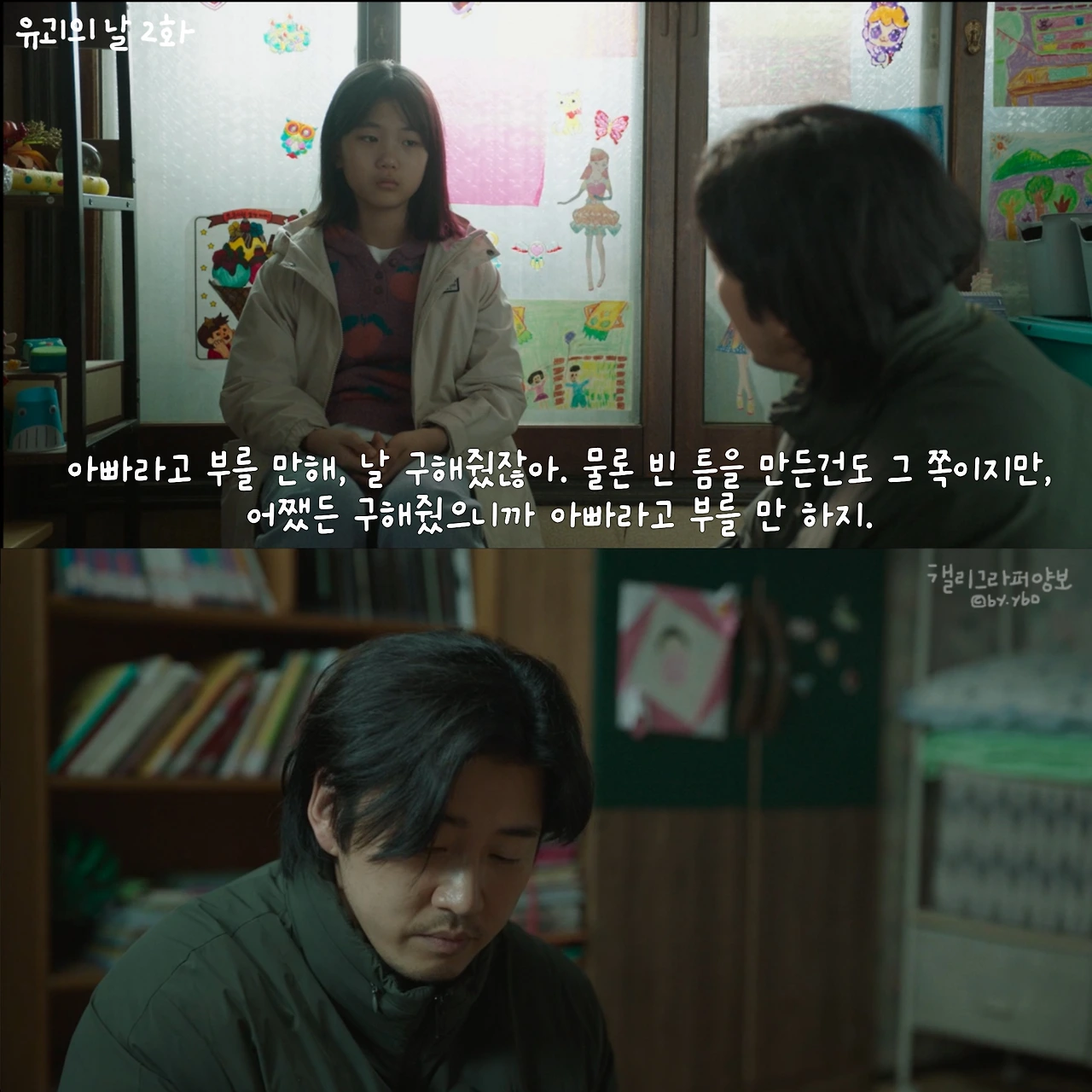 잠깐 책 <홍학의 자리>에 대해 이야기를 해보자면, 이 책은 다현이를 죽인 범인이 밝혀지는 과정을 담고 있다. 식상한 표현일지 몰라도 아주 오랜만에 뒷 내용이 궁금해 손에서 책을 놓지 못했다. 책이 준 짜릿한 몰입감은 추리소설의 꽃이라 불리는 ‘반전’에 있었고, 이 책에서 내가 가장 큰 충격을 받은 반전의 실체는 내가 가진 선입견에 있었다. 때문에 사건의 전말이 드러날수록 나는 이야기와 함께 높이 들어 올려졌다, 마지막 순간에 땅으로 내쳐지고 말았다. 독자를 들었다 놨다 하는 수준이 아닌, 독자가 가진 생각을 뒤집어버리는 책 <홍학의 자리>는 일의 형세를 뒤바꾼다는 ‘반전’의 뜻을 제대로 보여준다. 추리 소설이라면 응당 있어야 하기에 존재하는 수동적인 형태의 ‘반전‘이 아닌, 그 자체로 메시지를 담고 있는 살아 숨 쉬는 ’ 반전‘을 경험하면서, 정해연 작가의 이야기를 통해 뒤바뀔 것들을 자연스레 기대하게 되었다. 그리고 드라마 <유괴의 날>는 아직 4회밖에 방영하지 않았지만, 반전을 가져 올 이야기의 실마리를 이미 여럿 풀어놨다.