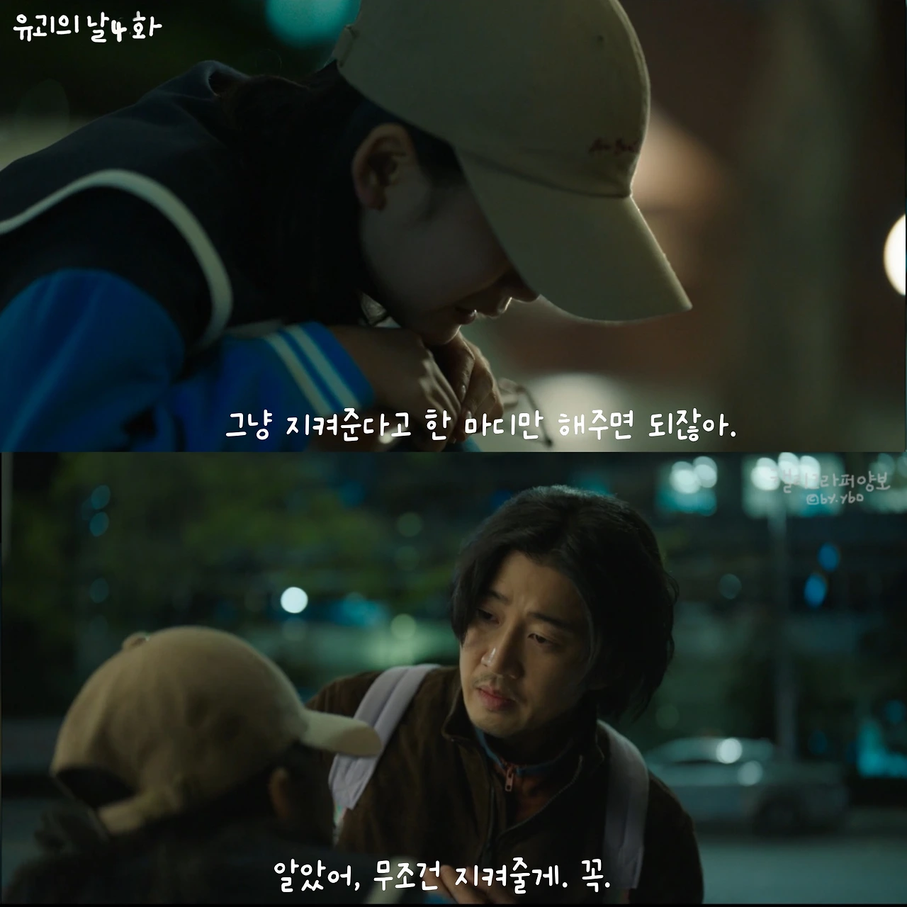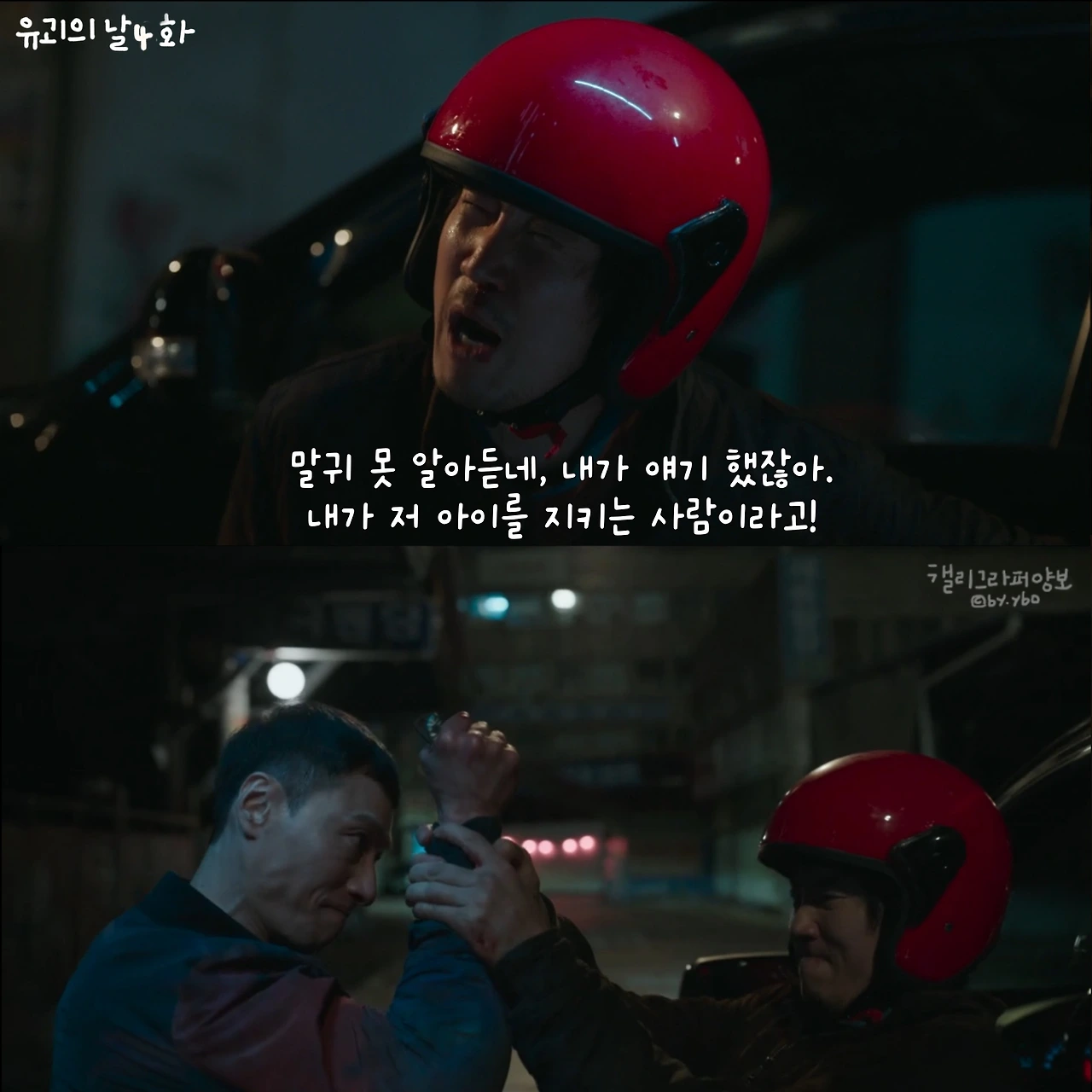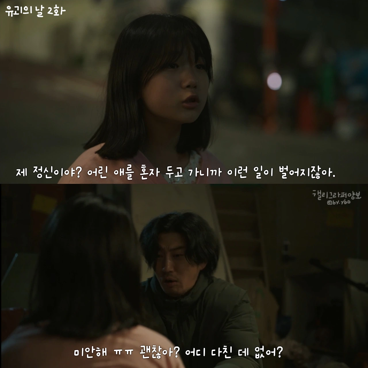 정해연 작가는 책 <홍학의 자리> 작가의 말에서 자신에게 ‘스릴러는 가장 극단적인 형태의 경고’라고 말한다. 앞서도 살짝 언급했지만 책 <홍학의 자리>를 읽으며 내가 받은 충격과 공포는 범행의 잔혹함에 있지 않았다. 나란 사람이 가진 편협함과 이 끔찍한 일들이 인간이라면 모두가 갖고 있는, 내면에 숨겨진 욕구에서 시작되었다는 사실이었다. ‘선입견’, ‘욕구‘와 같이 누구나 쉽게 공감할 수 있는 일상적인 요소가 더 공포스러울 때가 있다. 드라마 <유괴의 밤>에는 학대를 당하는 아이가 등장한다. 그 학대는 유괴로 이어졌고, 유괴는 또 다른 유괴로 이어질 뻔했다. 보호받지 못하는 위험에 노출된 아이는, 당연한 말이지만 또 다른 위험에 너무도 쉽게 노출된다. 그리고 굉장히 아이러니하게도, 위험에 노출된 로희를 지켜주는 어른이 가장 위험할 수 있는 유괴범 명준이란 사실이다. 과연 드라마 <유괴의 밤>에서 들려주려는 경고는 무엇일까?