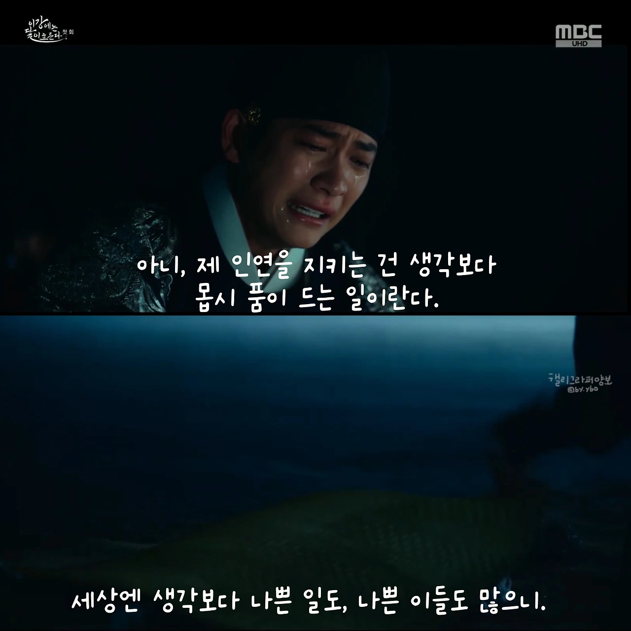 인연은 주어지는 것이지만, 그 인연을 지키는 건 끝까지 품을 들인 관계만이 할 수 있는 일이 아닐까? 지키고 싶은 게 있던 세 사람 중, 끝까지 지켜낸 건 이강뿐이었다. 김한철과 이희가 지키고자 선택한 방식에는 지키고자 한 대상을 향한 노력이 없었다. 그것은 일방적인 사랑이었고, 희생은 찾아볼 수 없었다.