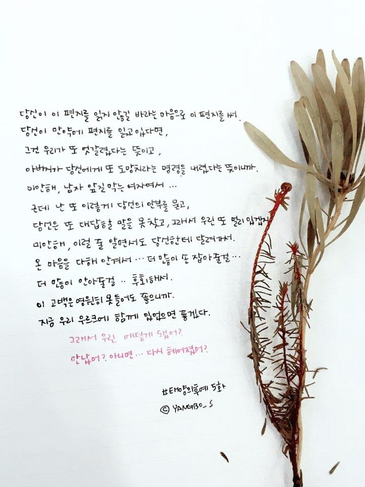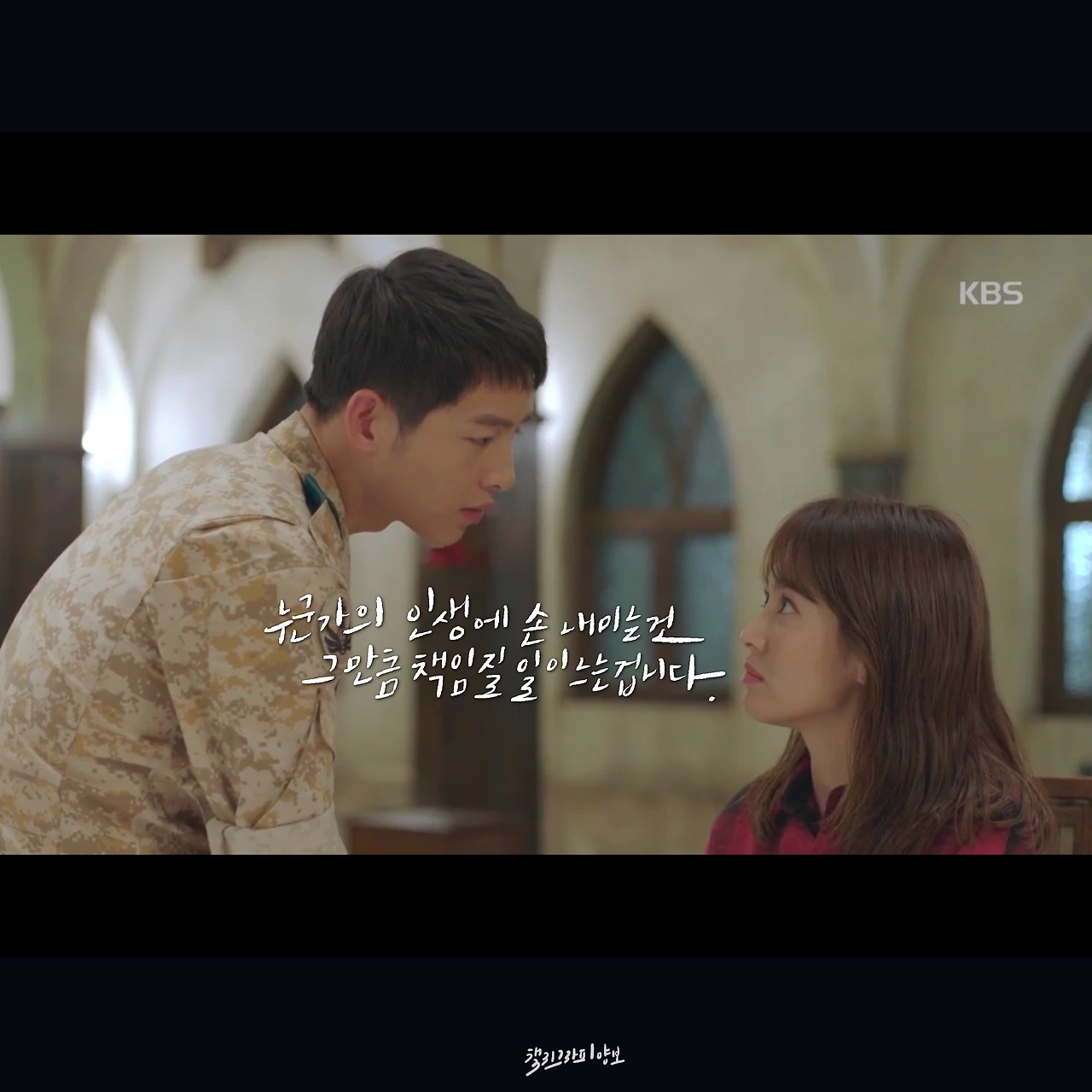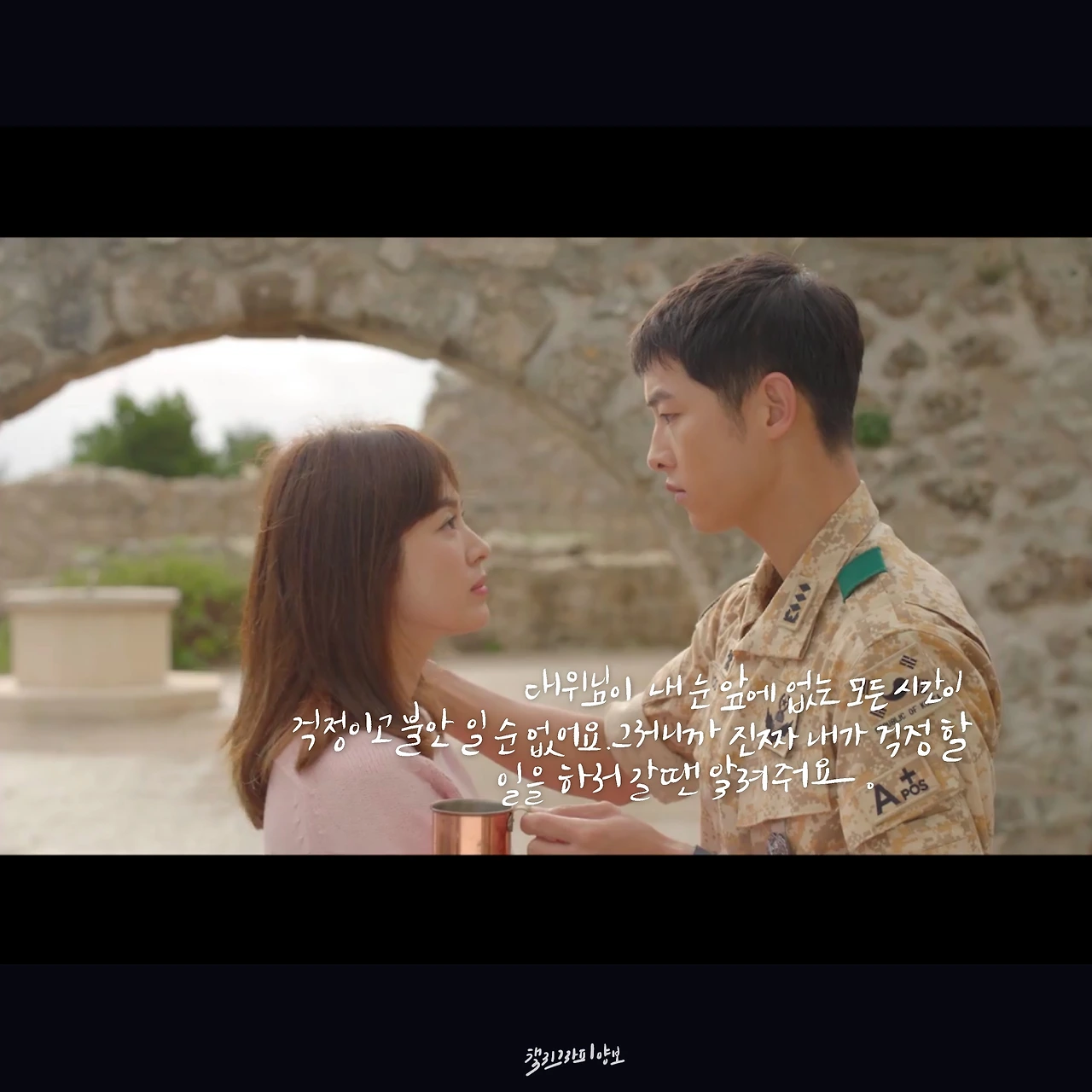 유대위와 강모연이 달달한 커플이었다면 서상사와 윤중위는 슬픈 커플이였다. 도망치고 전화를 받지 못하는 모든 상황이 서로를 향한 배려였으나 서로를 찌르는 상황이기도 했다. 군인커플이라는 설정이 내 현재와 거리감은 있었지만 주고 받는 대사에서 남녀의 심리가 잘 표현돼 무슨 말인지, 어떤 마음인지 알 것만 같았다. <상속자들>의 영도와 탄이 오빠처럼 <태양의 후예>에서는 다시 볼 때마다 이 커플에게 마음이 더 갔다.