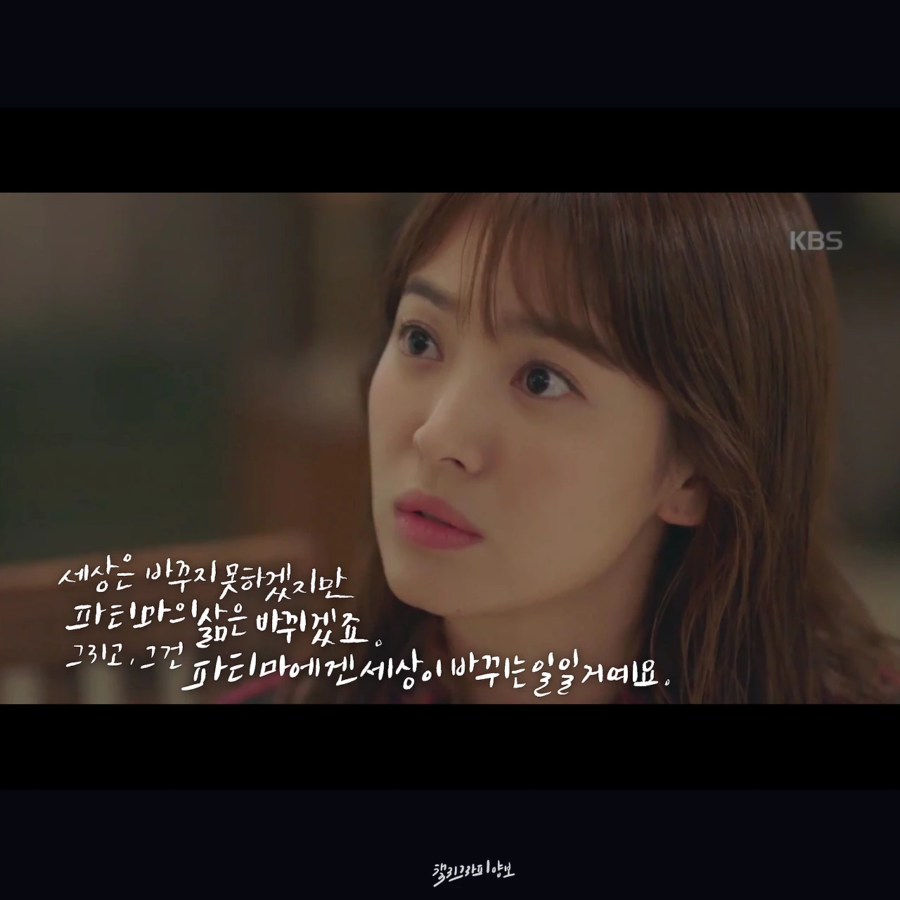 <태양의 후예>가 방영되었을 때에는 기대가 너무 높아 아쉬움도 많았었다. 시트콤처럼 매 회 사건 사고가 펼쳐지는데 여자 주인공이 그걸 다 이겨낸다. 그 어떠한 트라우마도 없어 보인다. 극 후반에 몰아쳐진 PPL도 눈살이 찌푸러지긴 했다.