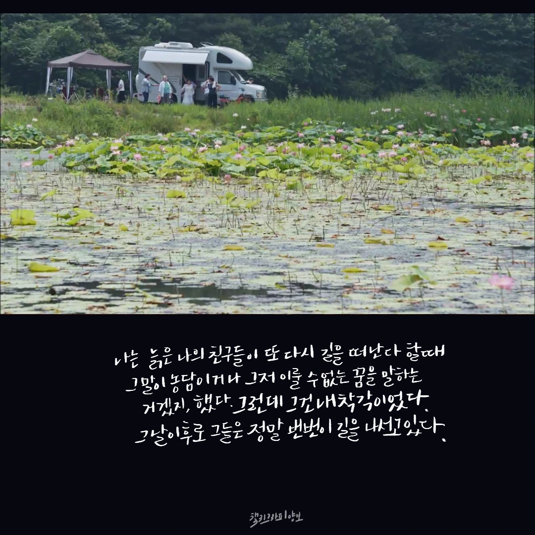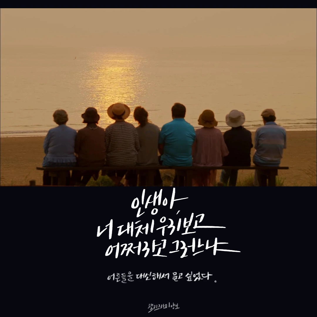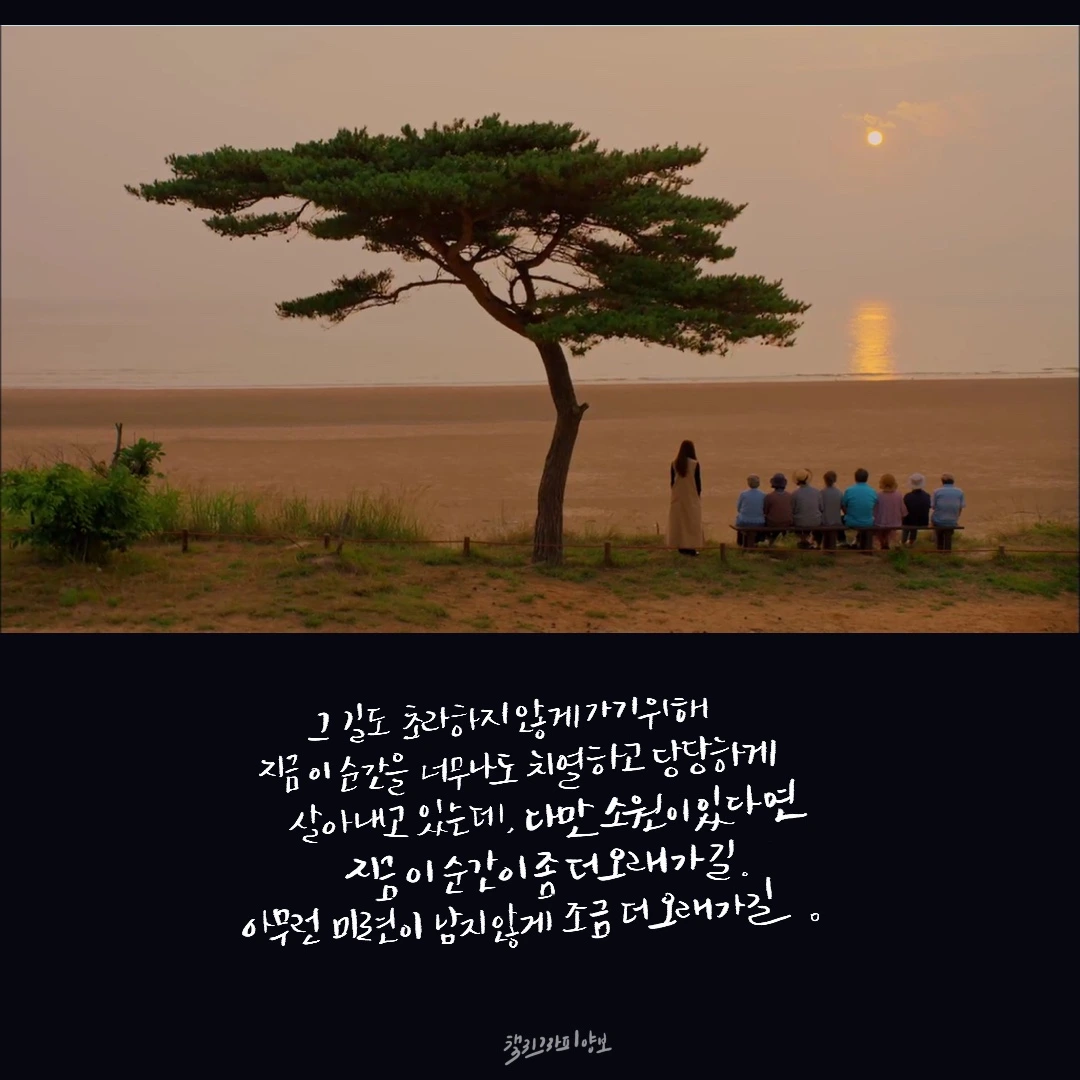 사실 우리 주변에 암이나 기타 병을 안고 살아가는 분들이 많다. 나의 엄마만 해도 그렇다. 모두 살아간다. 웃으며 울며 힘들어하지만 또 힘차게 살아가신다. "온갖 세상 일을 겪은 늙은 어른들이 거대하고 대단해 보이"는 이유며, 살아온 삶에 존경이 생기는 이유이기도 하다. 디마프에 나오는 늙은 어른들도 그렇게 살아간다. 그리고 그 나이에도 "길 위에서 죽겠노라" 꿈같은 이야기를 삶으로 옮긴다. 살아갈 남은 시간이 얼마나 소중한지 알기에, 함께 있는 사람들의 소중함을 누구보다 더 잘 알기에 행동에 거침이 없다.