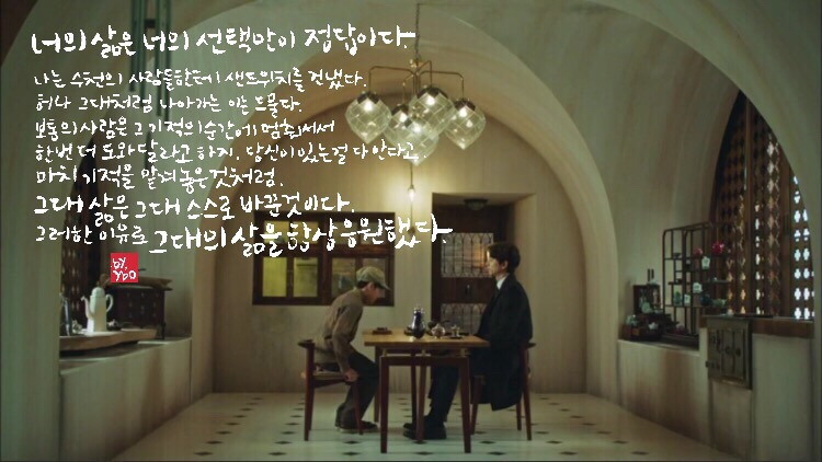 "너의 삶은 너의 선택만이 정답이다. 그대 삶은 그대 스스로 바꿔놓은 것이다."