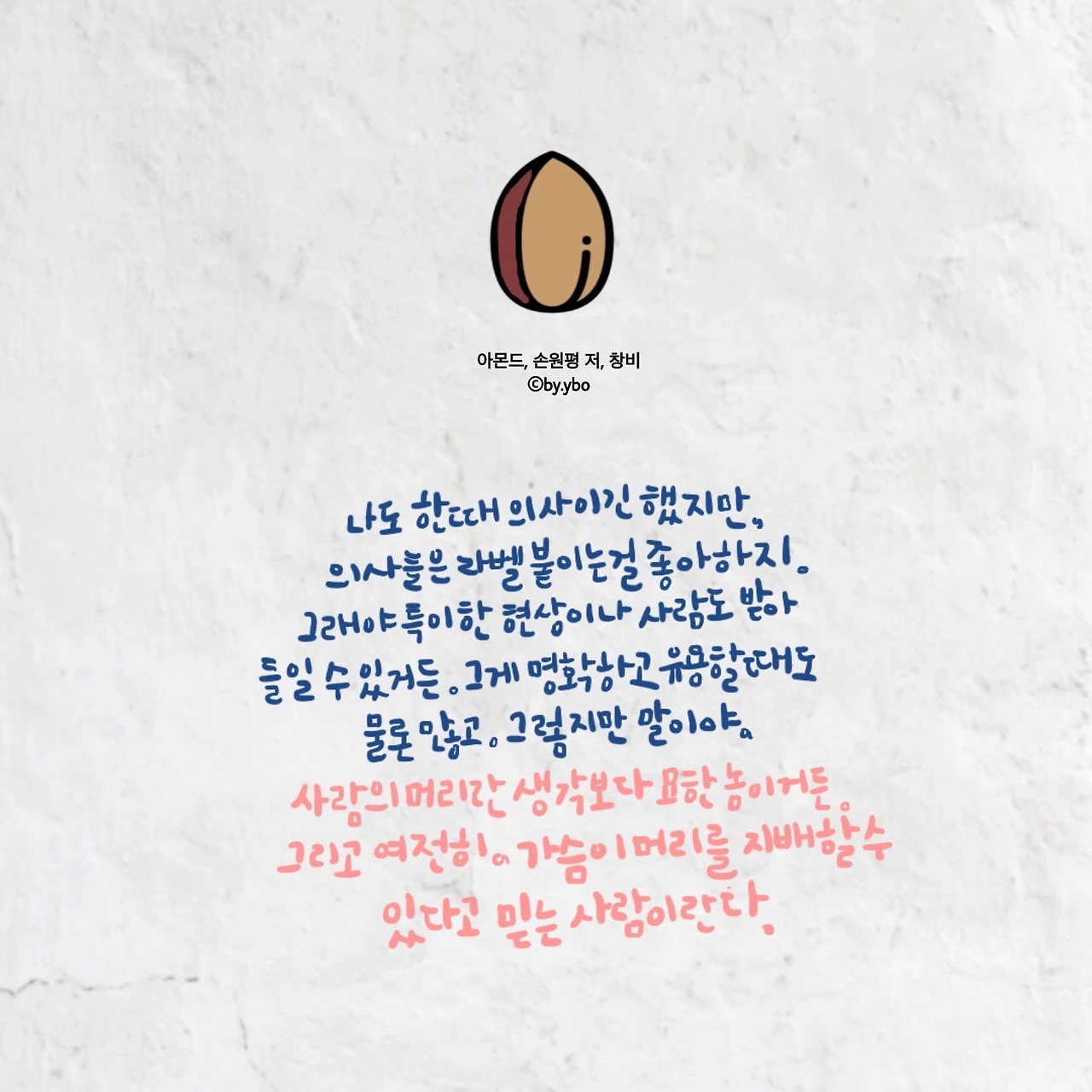 지금에서야 이런 증상이 과호흡이고 정신적 스트레스가 원인이라는 걸 알지만 그 당시엔 어디서도 들어보지 못한 증상이었다. 불행중 다행이라고 생각하는 건 병인 줄 몰라 병이 키워지지 않았던 것 이다. 아마 그 증상이 병이었다는 걸 알았다면 난 스스로를 나약하다고 또 과하게 채근했을 테니까.