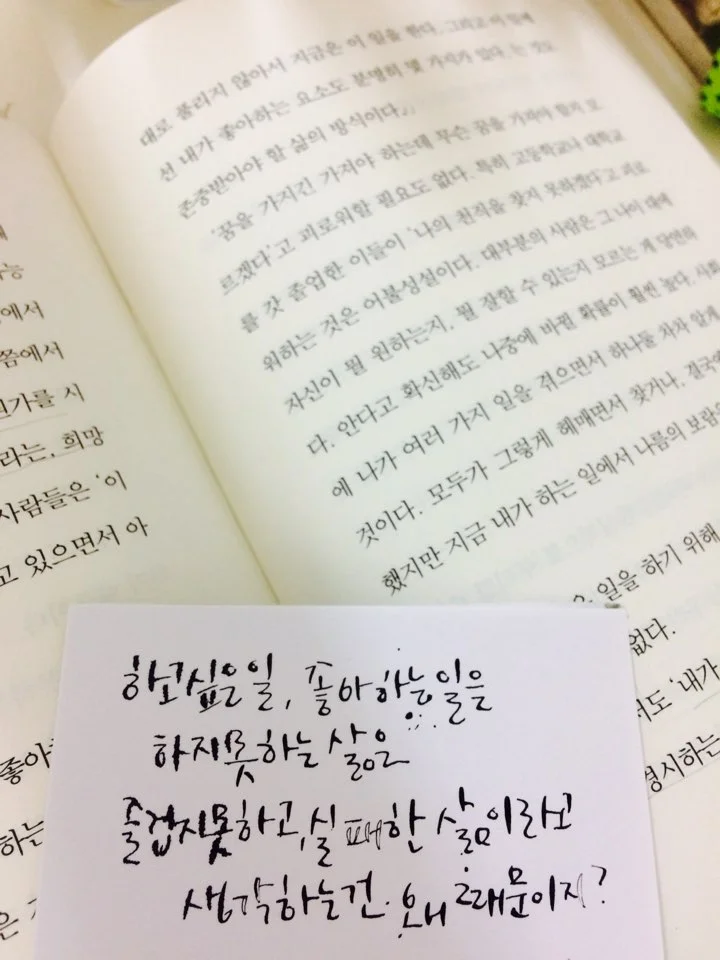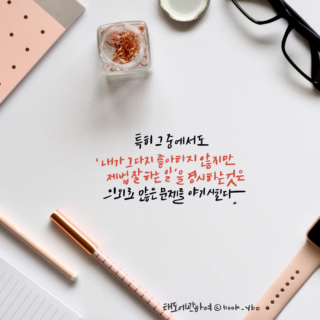 좋아하지는 않지만 제법 잘하는 일을 하고 있다면, 그 일이 주는 힘을 기반을 삼으면 좋겠다. 그 안에 자신이 좋아하는 부분이 있음을 발견하며 하고 싶은 일에 힘을 얻는 삶이 되길 응원한다.