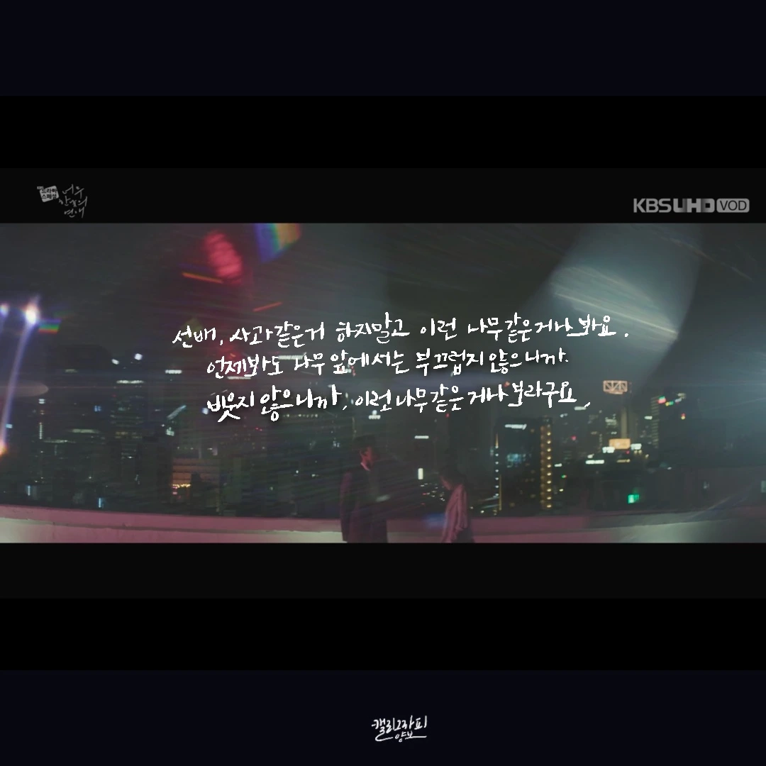 그 시절 그는 그녀를 사랑했다. 하지만 말하지 못했다. 누군가 자신을 비웃을까 봐. 하지만 그녀는 그런 그의 뒤에서 혼자 울지언정, 그를 비난하지 않았다. 그는 이제까지도 자신의 밑바닥을 대면하지 못하고 시간을 보냈던 것 같다. 그랬기에 여전한 그녀를 다시 한번 마주함에 그는 그녀에게 등을 돌리고 뛰처 나갈 수밖에 없었던 게 아닐까?