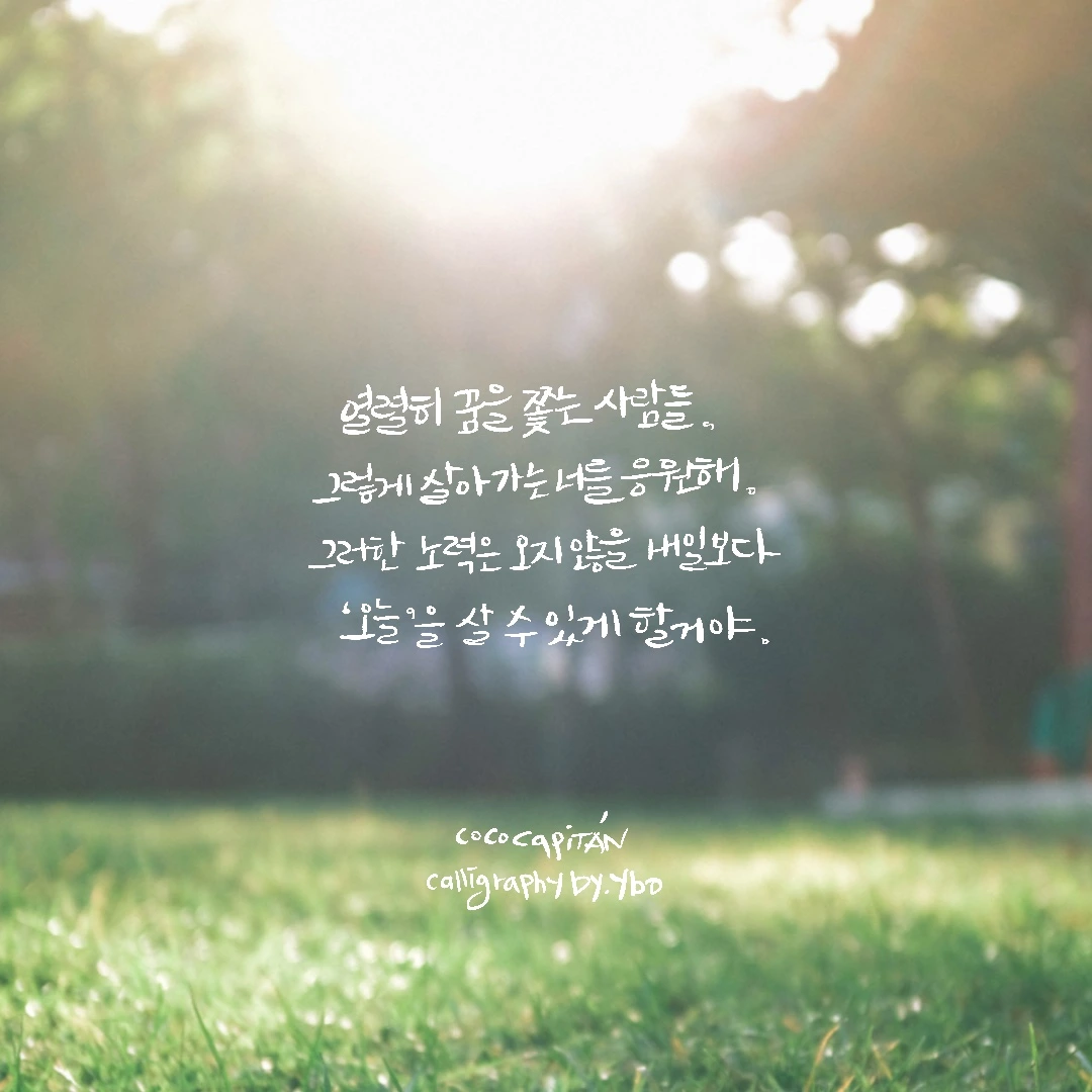 무작정 오늘을 즐긴다는 것이, 오늘의 만족감만을 생각하며 소비한다는 것이, 현재를 사는 유일한 방법이라고 생각하지 않는다. 코코카피턴의 사진전을 보면서 꿈을 좇으며 열심을 내는 삶은 미래의 나를 위한 것이기도 하겠지만, 가장 먼저 되고 정확한 건 오늘의 나를 위한 것이란 생각을 얻었다.
