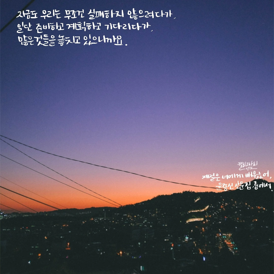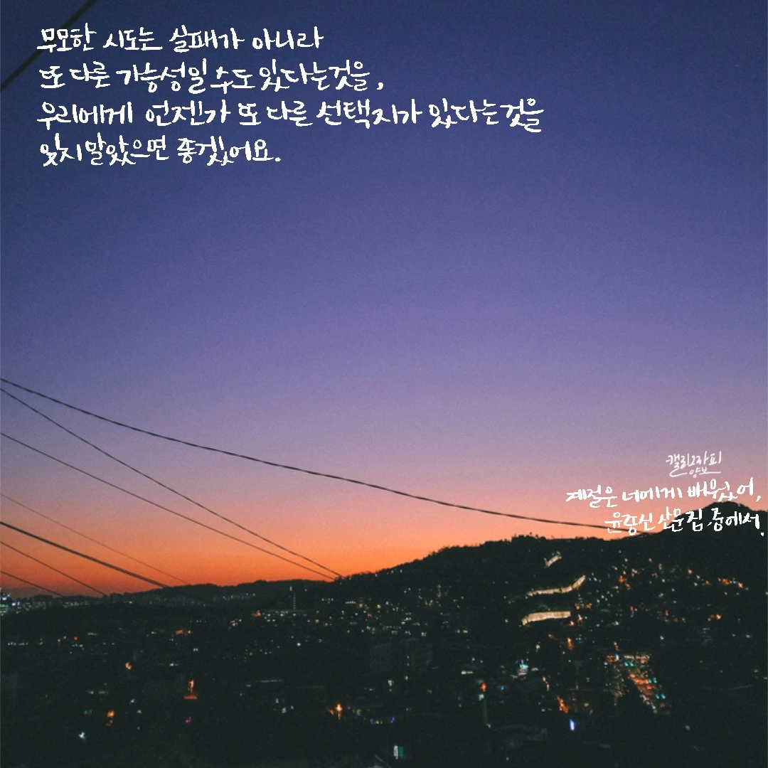 그러니 더불어 모든 시간의 내가 행복했으면 좋겠다. 후회 속에 잠겨 미움이 생기지 않길, 오래 기다리며 미루다가 놓쳐버리지 않길. 그랬으면 좋겠다.