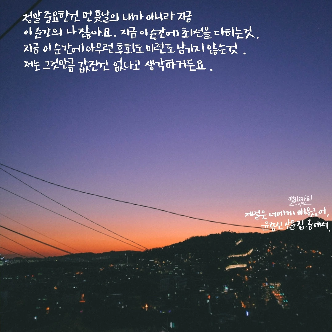 그런데 재미있는 건 그렇게 생각하던 미래에 갔을 때에도 난 또다시 미래를 생각하고 있다는 거야.”
