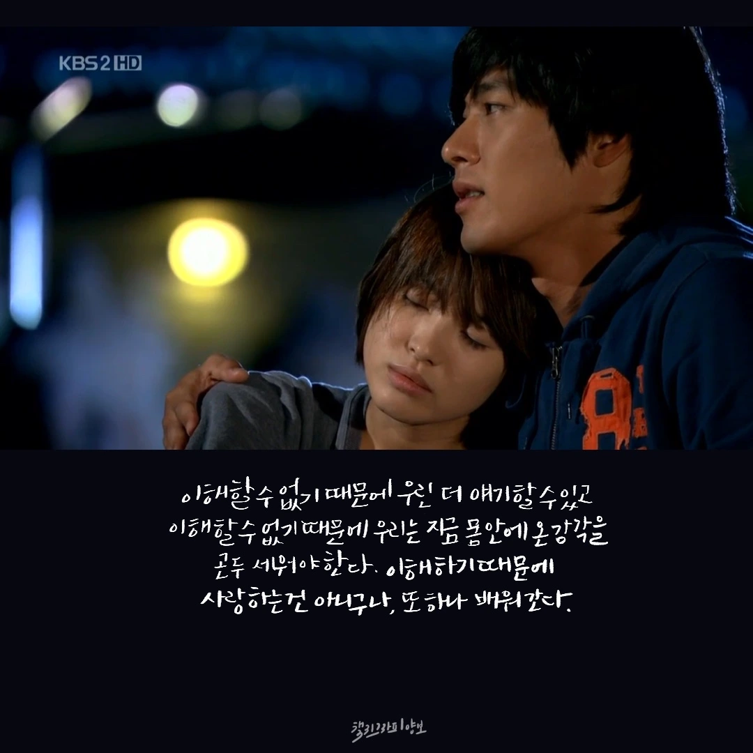 스무 살 초반 그저 현빈이, 송혜교가 멋있고 좋아 보였다면 지금은 준영이가 엄마와 그렇게 싸우면서도 엄마를 안타까워하는 마음이 무엇인지, 가부장적인 아버지에게 질린 지오의 답답함이 무엇인지, 조직 안에서 일할 때 생기는 어려움이 무엇인지 아니까. 앎에서 오는 이해가 드라마 속 이야기를 내 곁으로 가까이 끌어당겼다.