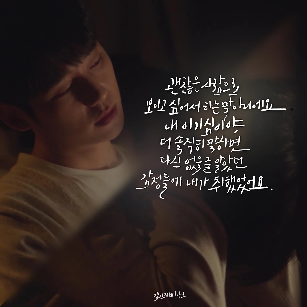 나이가 들수록 감정을 느끼는 일이 버거워지고, 사랑, 그래 사랑은 하고 싶지만 어떻게 계산기를 두들겨 보아도 손해 보는 것 밖에 없는 이 비효율적인 일을 구태어 할 필요가 뭐가 있을까? 이러한 생각으로 기울어지는 세상 속에 나도 흘러가듯 흘러가버릴까 생각이 들었다. 정인만큼 자신의 감정 하나만큼은 확실히 하자 주의이기에.