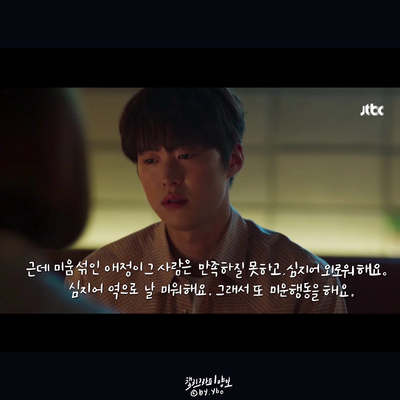 동전에도 양면이 있는 마당에, 사랑이 미움이 되고 헤어지는 과정에 재훈만 잘못한 게 있을까? 그의 자상함이 호구스럽고 착한 그래서 안타깝다. 이별할 댄 자상함만큼 불필요하고 나쁜 것도 없는데.