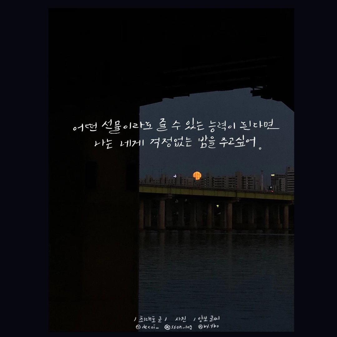 쓸데없는 생각은 구구단과 양 무리에 밀려 잠으로 사라진다. 그러나 이에 밀리지 않는 생각이 있다. 그럴 땐 이해를 구하는 중이라고 여기기로 했다. 억지로 생각을 접는 대신, 당신을 그리고 나를 이해하는 시간으로 삼았다. 그렇게 이해를 쌓아 가다 보면 우리의 낮에 더 해질 다정한 시간이 평안한 밤을 가져와주지 않을까? 하는 바람으로.